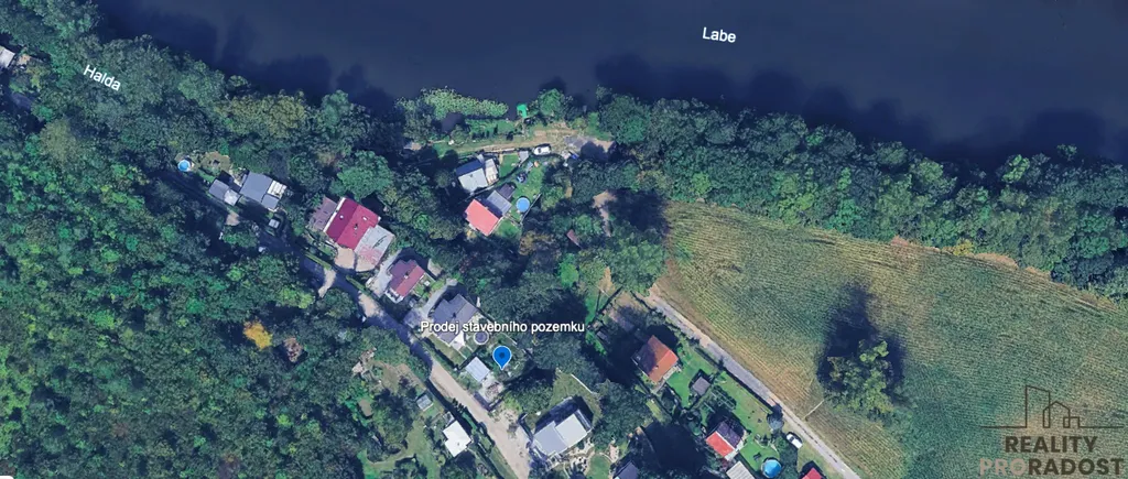 Stavební pozemek u Labe se stavebním povolením – Pardubice, Hůrka