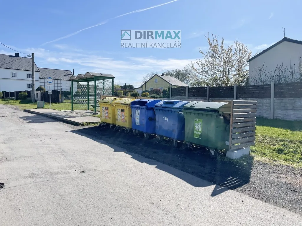 Blízko je náves viz. foto s třízeným odpadem a zastávky MHD. Posledních několik foto inzerce.