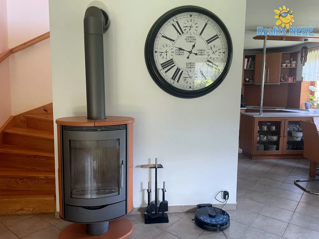 Prostorná kuchyňská linka s kuchyňským ostrůvkem, vestavné spotřebiče, místo na lednici, myčka, indukční varná el. deska, digestoř, umyvadlo s výhledem do zahrady. Jídelní stůl společně s krbovými kamny propojuje obývací část k odpočinku celé rodiny. Výstupem na terasu jste v kontaktu s klidnou zahradou. Dům je napojen na veřejné rozvody elektro. Podlahové vytápění tepelným čerpadlem, nebo můžete vytápět i krbem. Přípojka na vodu, nebo ji můžete čerpat z vlastní vrtané studny, dům má vlastní ČOV. Chcete-li bydlet v romantickém kraji obklopen lesy a přitom zůstat nadosah, zvolte prohlídku tohoto domu. Těšíme se na vás. Další foto i půdorys přímo na našich stránkách.