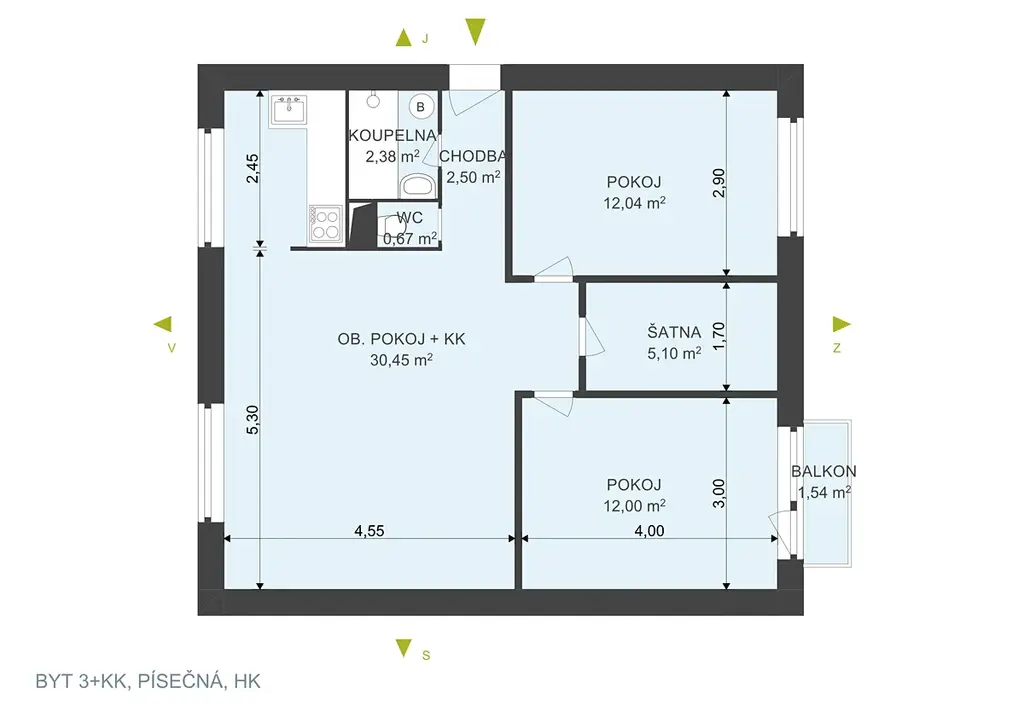 Pronájem bytu 3+kk, Hradec Králové, Písečná, 67 m2