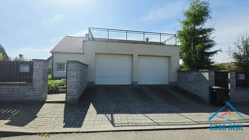 Dům se nachází pár minut od okruhu a 20 minut vzdáleném místě od centra Prahy a nabízí se částečně vybaven (nábytek ve vstupní hale, vestavěné skříně, šatna, kuchyňská linka s příslušenstvím).