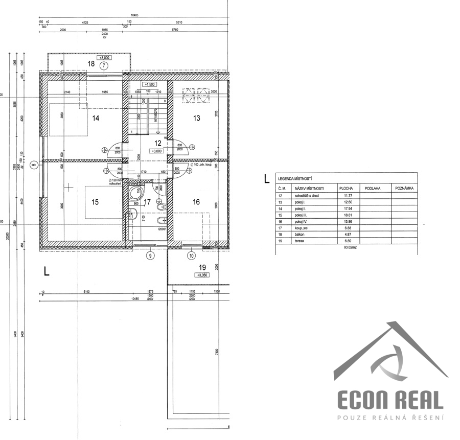 V horním patře se nachází: 3 neprůchozí ložnice, na míru vestavnými prvky vybavená šatna s výstupem na horní terasu a rodinná koupelna s vanou, toaletou a bidetem.