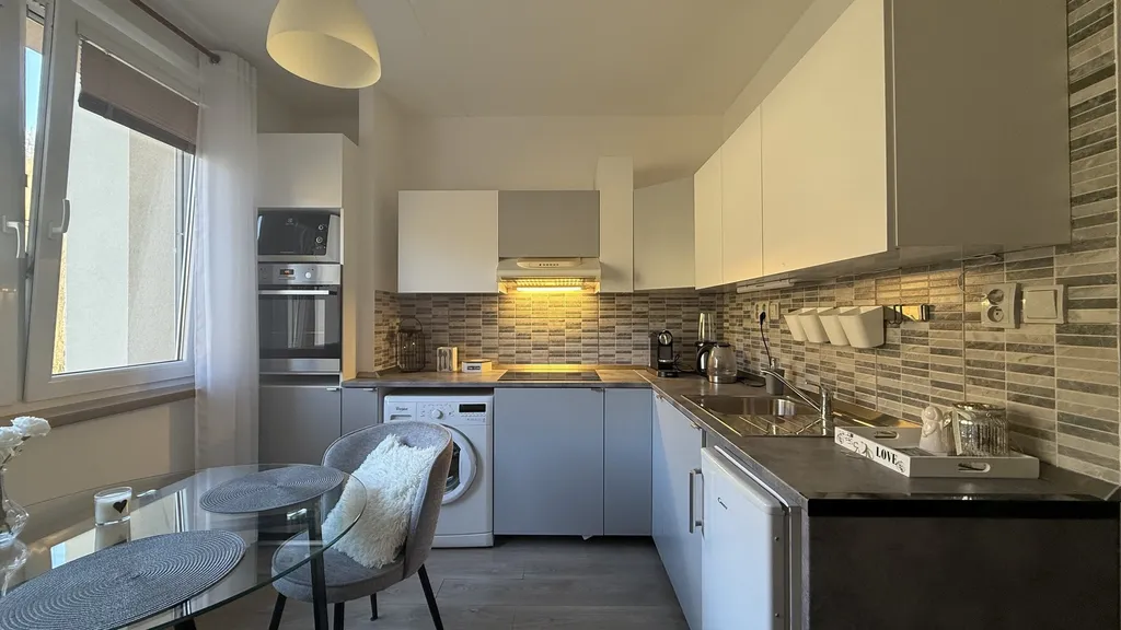 Kombinace dřevěných dveří se zárubněmi, na míru zhotovené a zařízené kuchyně se sporákem, digestoří, lednicí s mrazákem, horkovzdušnou troubou, pračkou a mikrovlnou troubou, vstupní chodby s botníkem a věšáky na kabáty, vybavenou moderní koupelnou se sprchovým koutem, WC, umyvadlem, zrcadlem a skříňkami, prostorného obývacího pokoje s ložnicí, novou manželskou postelí, TV stěnou a v neposlední řadě s vestěnou šatní skříní s velkým úložným prostorem, to vše tvoří vyvážený a harmonický celek, domov. Vše doplňují příjemná svítidla, přesně tam, kde by jste je čekali. Z celého bytu dýchá útulno, čisto a klid.