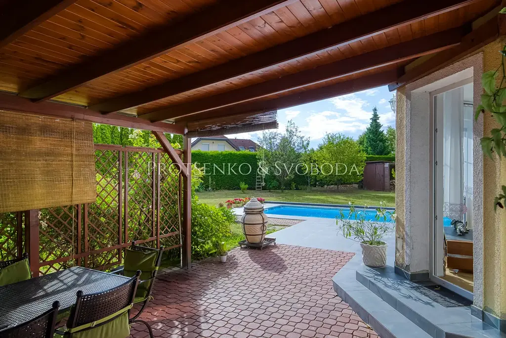 Protsenko & Svoboda v zastoupení majitele nabízí rodinný dům s bazénem a zahradou v rezidenční části Hostivic, ideální pro klidné rodinné bydlení v dosahu Prahy.