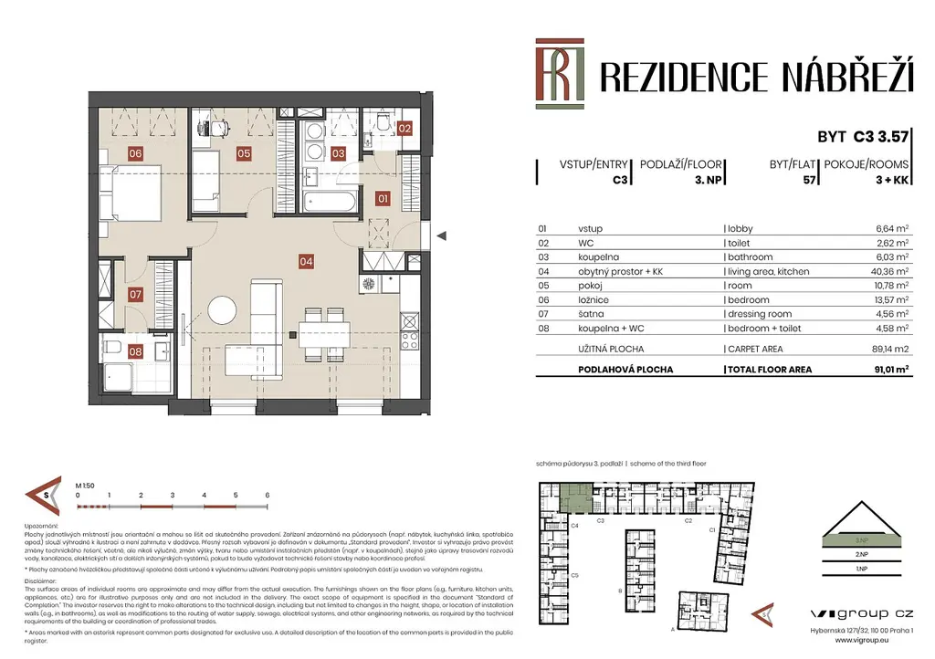 Nadstandardní byt 3+kk s dvěmi koupelnami v Brandýse nad Labem-Staré Boleslavi. Tento byt se nachází v exkluzivní lokalitě ostrova v klidné části obce a je součástí projektu Rezidence Nábřeží. Byt má celkovou podlahovou plochu 91 m² a je umístěn v podkroví, ve 3. patře třípodlažního domu. Byt má východozápadní orientaci s tím, že obě ložnice mají střešní okna s orientaci na východ, obývací pokoj vikýřová okna s orientací na západ. Menší ložnice pak má svoji soukromou koupelnu přístupnou přes šatnu. Druhá, větší koupelna s odděleným samostným WC je přístupná z centrální vstupní chodby do bytu.
