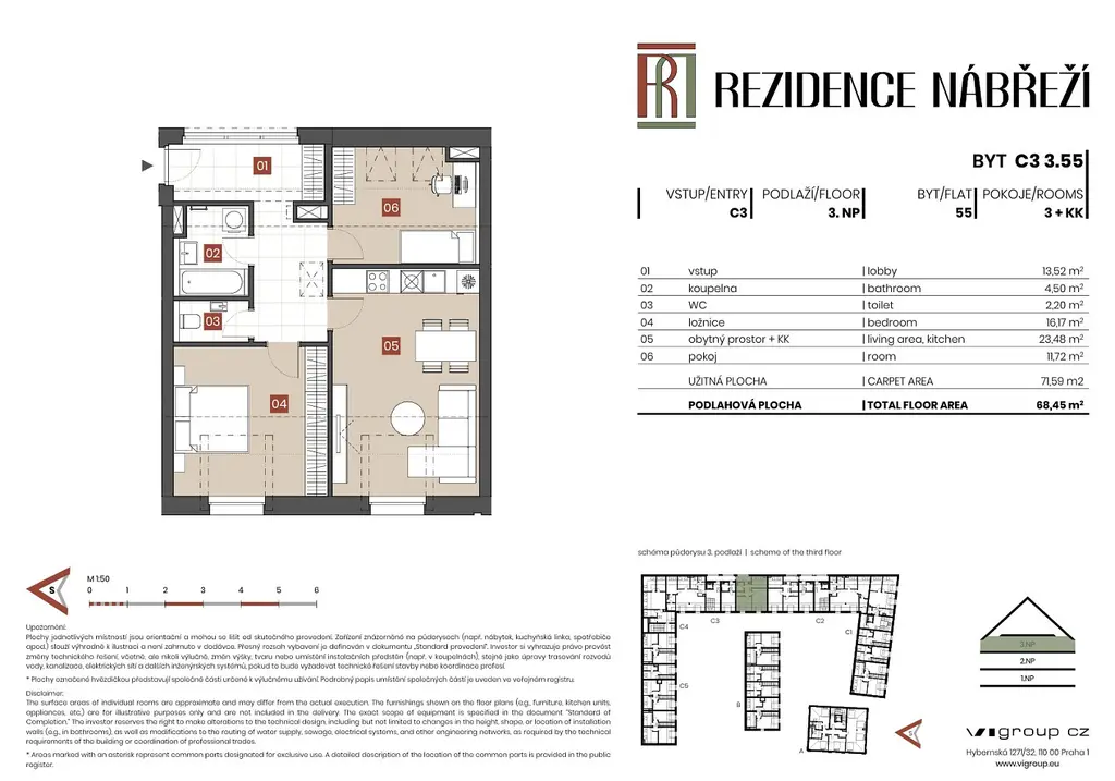 Byt 3+kk v Brandýse nad Labem-Staré Boleslavi. Tento byt se nachází v podkroví v exkluzivní lokalitě ostrova v klidné části obce a je součástí projektu Rezidence Nábřeží. Byt má celkovou podlahovou plochu 69 m² a je umístěn ve 3. patře třípodlažního domu. Byt má východozápadní orientaci s tím, že jedna ložnice a obývací pokoj jsou na západ, druhá ložnice pak na východ. K bytu náleží soukromá terasa přes kterou se do bytu vchází. Součástí dispozice je koupelna s vanou a samostatné WC