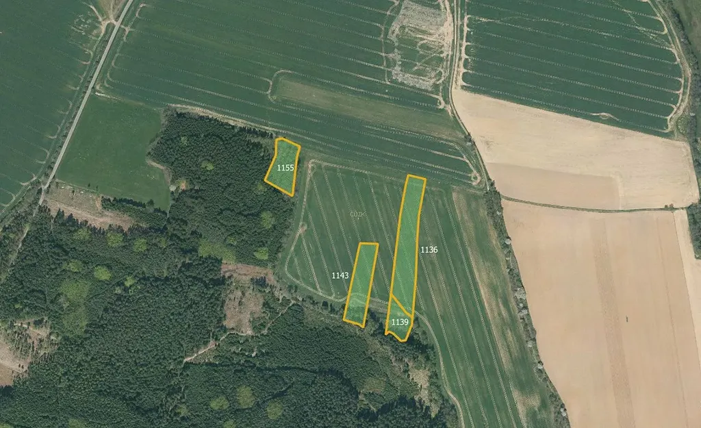 Celková výměra uvedených parcel je 281 634 m2. Vlastník zde nabízí k prodeji 46 939 m2, a to ve skladbě: