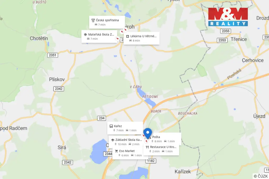 Nabízíme k prodeji spoluvlastnický podíl o velikosti 5/6 z celku rodinného domu s pozemky. Celková zastavěná plocha domu činí 311 m2 s pozemky o celkové rozloze 1275 m2 v klidné části obce Kařez, která v roce 2022 vyhrála soutěž o nejlepší vesnici Plzeňského kraje. Ideální pro ty, kteří hledají harmonii mezi přírodou a pohodlným bydlením. Tento rohový cihlový dům disponuje jedním nadzemním podlažím a nabízí celkem 5 prostorných místností. Poskytuje dostatek prostoru pro rodinný život. K nemovitosti náleží také prostorná půda, která skýtá možnost dalšího využití dle vašich představ. Dům je ve velmi dobrém stavu, je napojen na elektřinu, veřejnou kanalizaci, voda z vlastní studny. Vytápění krbovými kamny na tuhá paliva, ohřev vody boilerem. Dům s pozemky zajišťuje dostatek soukromí a místa pro zahradu či jiné aktivity. Nepropásněte tuto jedinečnou příležitost na klidné bydlení v atraktivní lokalitě obce Kařez. Tato nabídka je také ideální pro investory.