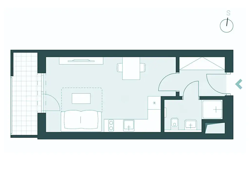 Byt o podlahové ploše 32 m² + balkon 5 m2 se nachází v 6.NP moderního rezidenčního komplexu, který nabízí veškeré zázemí pro pohodlné městské bydlení.