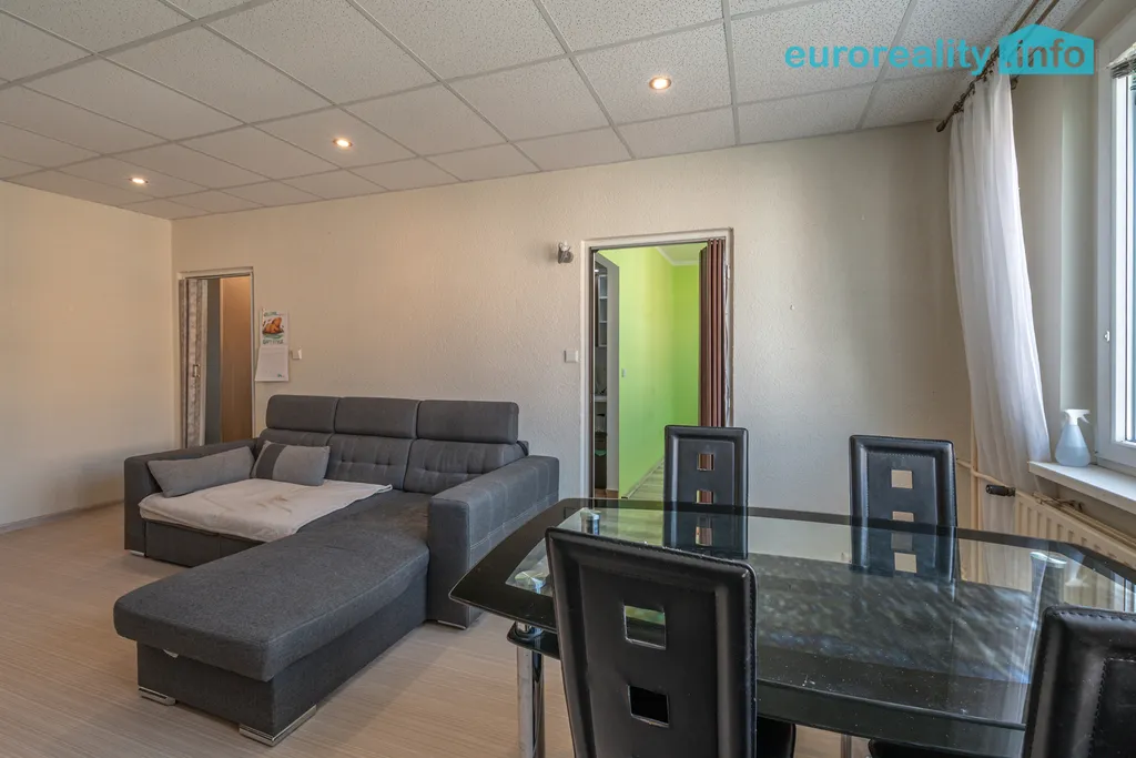Dispozice bytové jednotky je velmi funkční – prostorný obývací pokoj, samostatná ložnice, kuchyně s místem pro jídelní kout a koupelna s vanou a toaletou. Byt je v udržovaném stavu a nabízí ideální příležitost jak k okamžitému bydlení, tak k případné modernizaci dle vlastních představ.