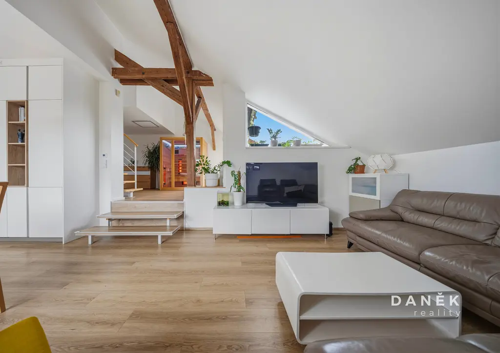 Přesně takový je tento mezonet 4+kk o celkové podlahové ploše 155 m² v oblíbené části Brno-Štýřice. Nabízí prostor, který běžně čekáte spíš od domu než od bytu. Dvě podlaží, skvělou atmosféru, spoustu světla, vlastní terasu a bonus, který se nevidí každý den – infra saunu.