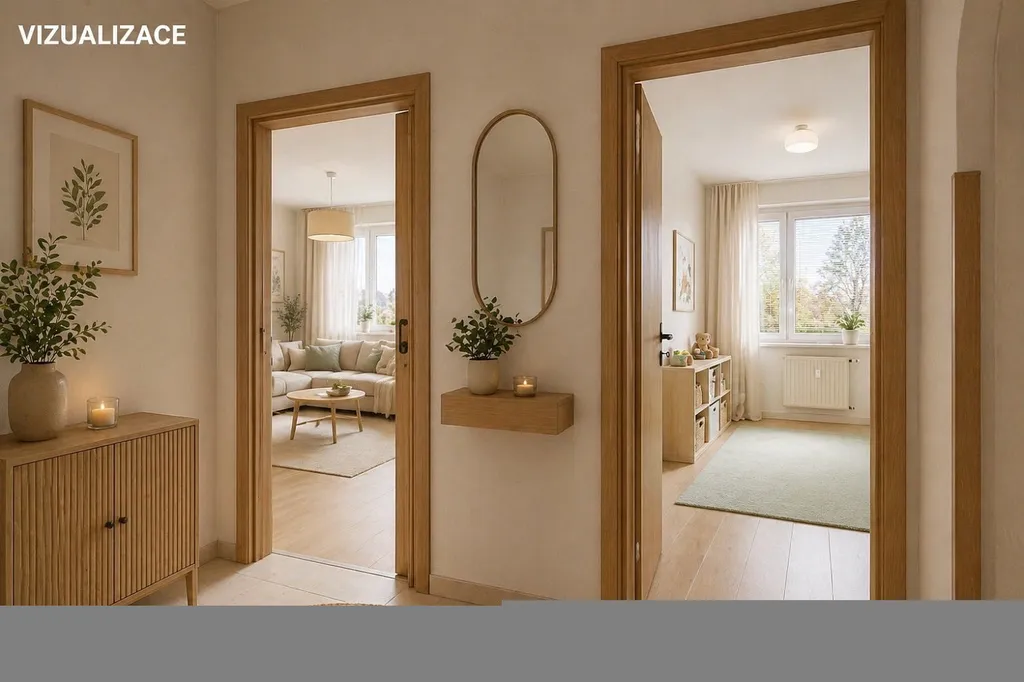 Nabízíme k prodeji byt o dispozici 3+1 a celkové výměře 65 m² v obci Příšovice. Dále k bytu náleží dva balkóny (3,71 m²) a sklepní kóje (3 m²). Byt je v původním stavu a je určen k rekonstrukci, což nabízí skvělou příležitost přizpůsobit si bydlení přesně podle vlastních představ. Pro lepší představu o potenciálu bytu přikládáme vizualizace, jak by mohla rekonstrukce vypadat.