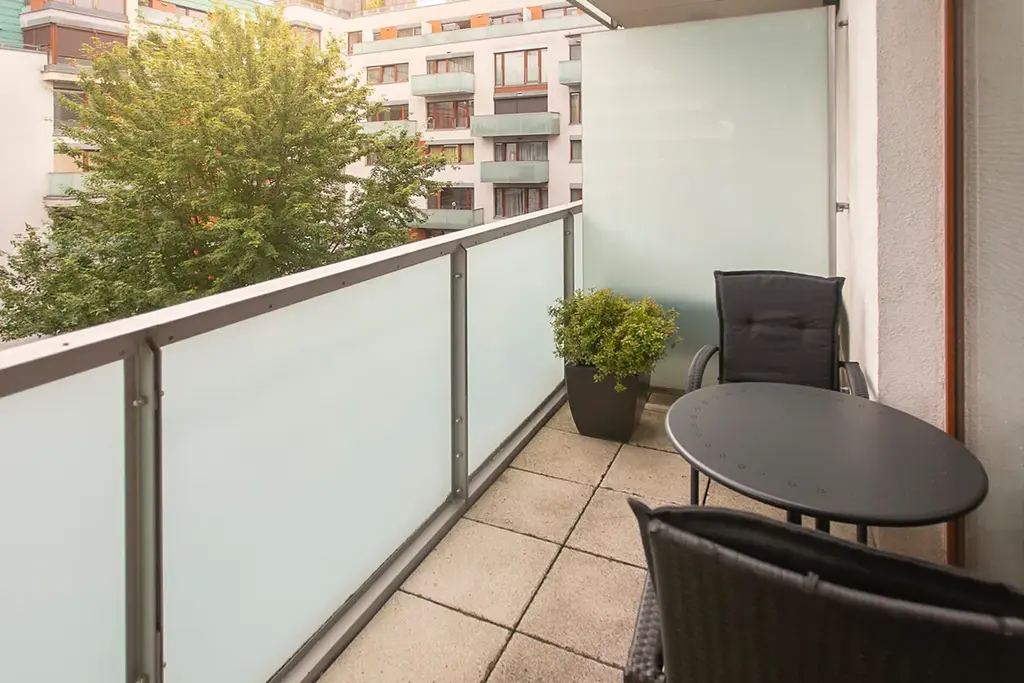 Byt se pronajímá kompletně zařízený a je orientovaný do klidné, pečlivě upravené japonské zahrady, která vytváří naprosto výjimečnou atmosféru soukromí a klidu přímo v centru města. Součástí bytu je také balkon přístupný z obývací části. Prvek, který tyto byty činí dlouhodobě velmi žádanými.