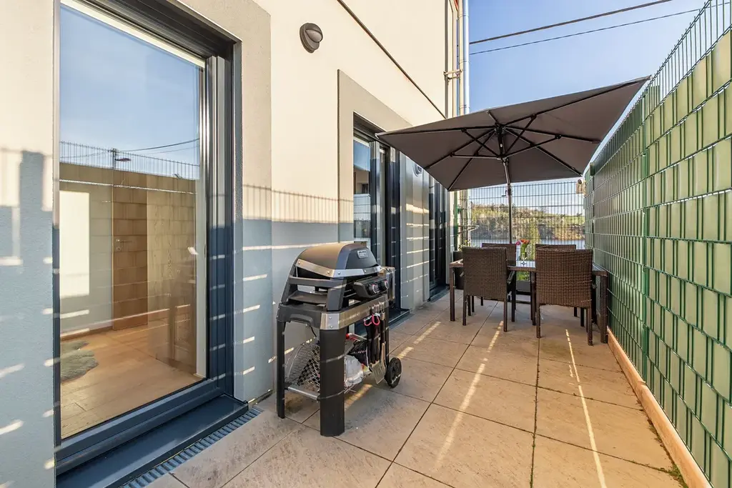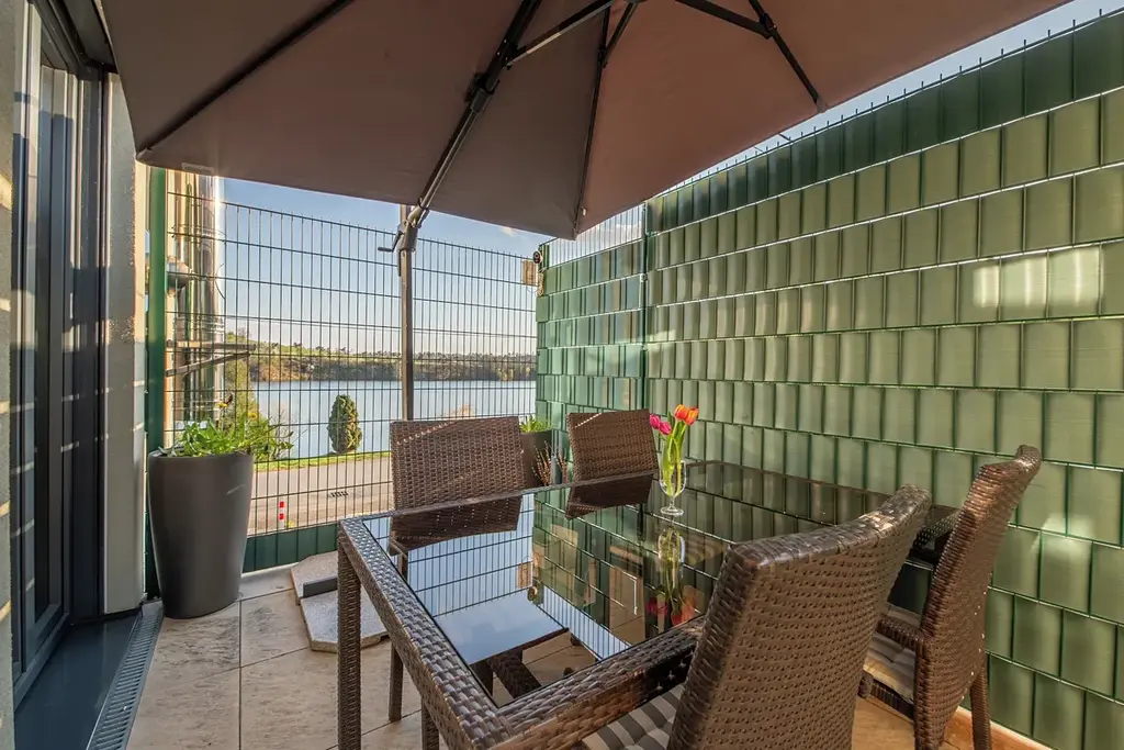 Terasa (28 m²) a balkon (10,6 m²): Ranní káva na terase, víkendy na paddleboardu a západy slunce se sklenkou vína, které vás nikdy nepřestanou bavit. Tady se nežije podle hodin, ale podle nálady hladiny.