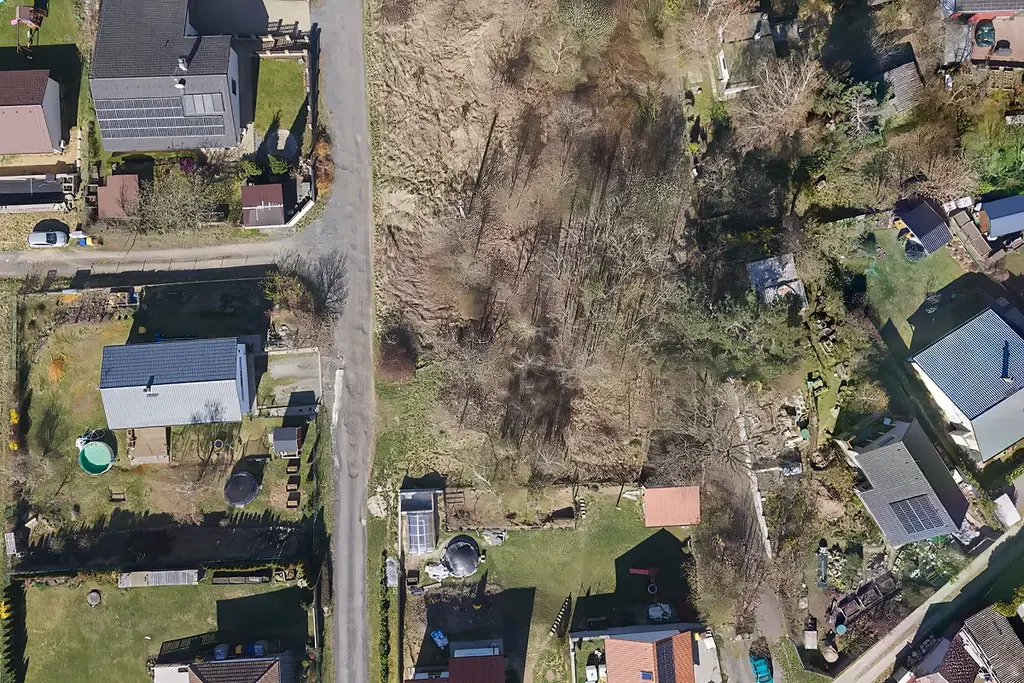 Druhý pozemek parcel. č. 189/17 o velikosti 1.000m2 je mírně svažitý, různoběžného tvaru.
