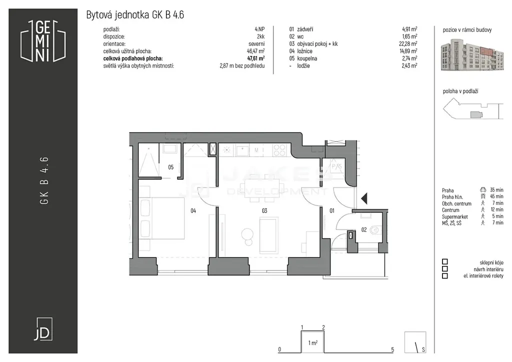 Dovolujeme si Vám nabídnout krásný a moderní byt 2+kk v novém projektu Gemini Kolín s perfektní dostupností na vlakové nádraží a do centra. Z Kolína do Prahy již za 29 minut. K nastěhování ihned.