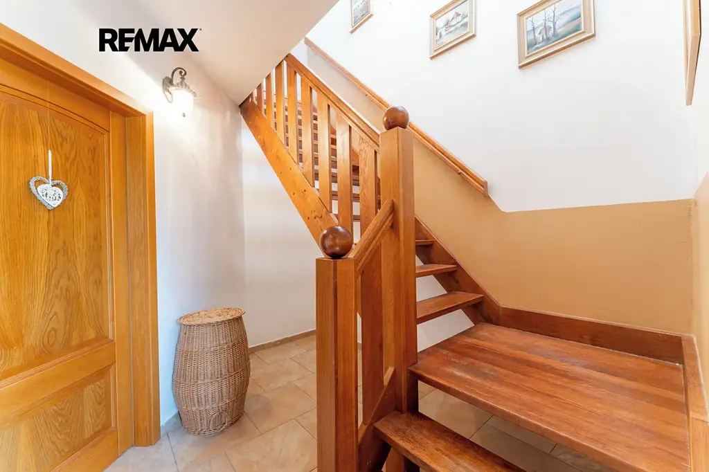 Příjezd na pozemek je přes dálkově ovládaná vjezdová vrata, možnost parkování vozidel je v garážích a na krytém stání před domem.