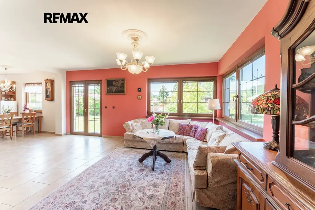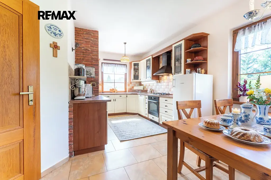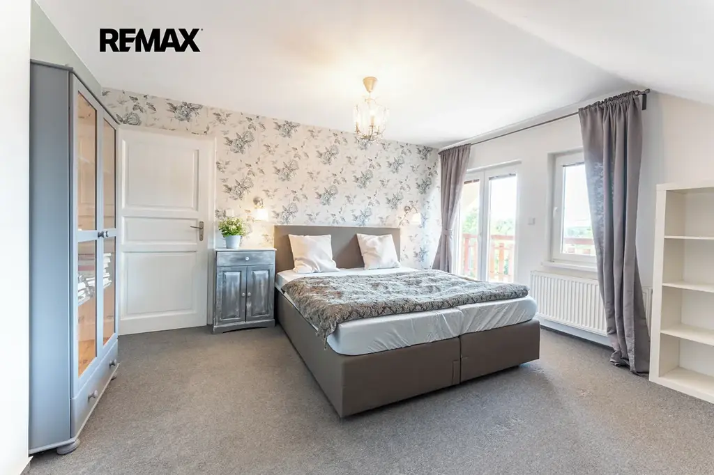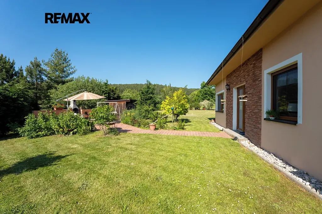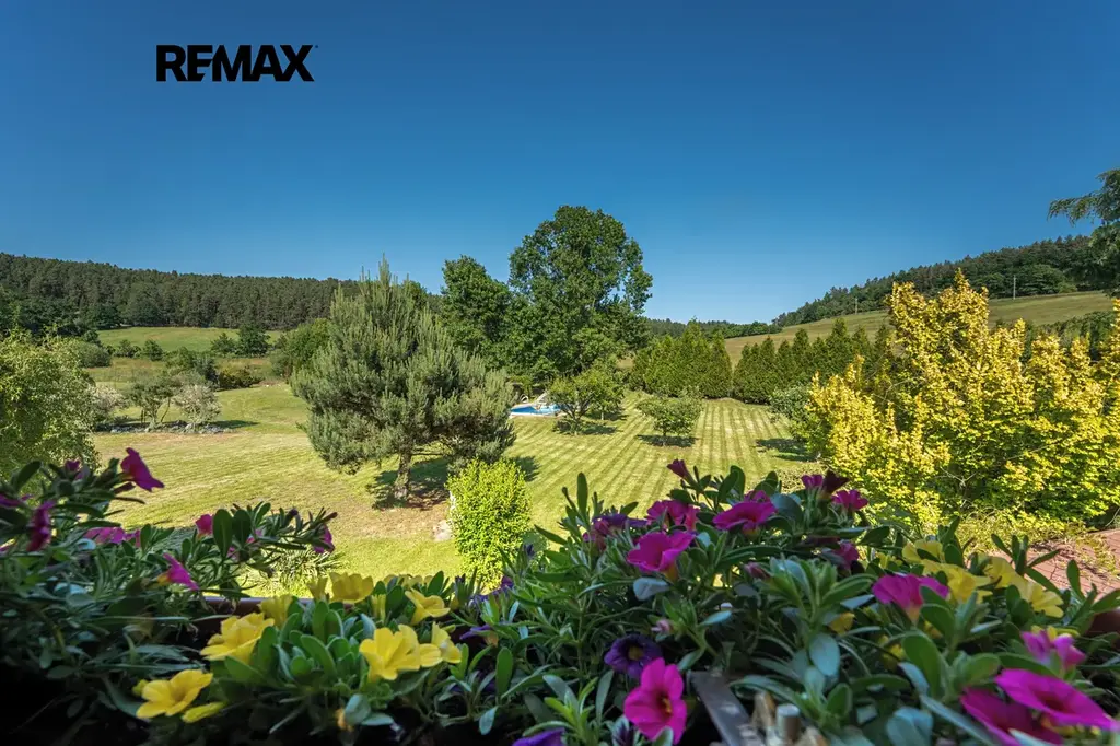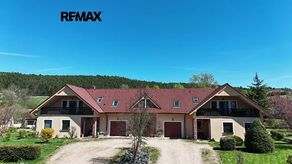 Na oploceném pozemku o rozloze 7305 m2 se nachází multifunkční objekt se čtyřmi samostatnými bytovými jednotkami s garážemi a udržovaná zahrada s rybníkem, bazénem a řadou půvabných zákoutí. Podlahová plocha domu je 550 m2. Kolaudace domu proběhla v roce 2007.