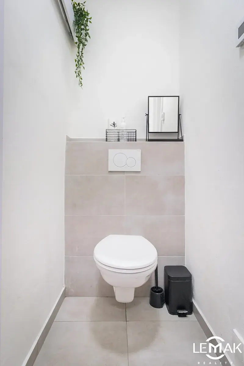 Podlahy v bytě kryje lepený vinyl, v koupelně, komoře a na toaletě keramická dlažba. Vytápění je podlahové, všechny místnosti mají svůj termostat. Byt má rovněž klimatizaci, kterou je možné si v přechodných obdobích přitápět a letních měsících chladit.