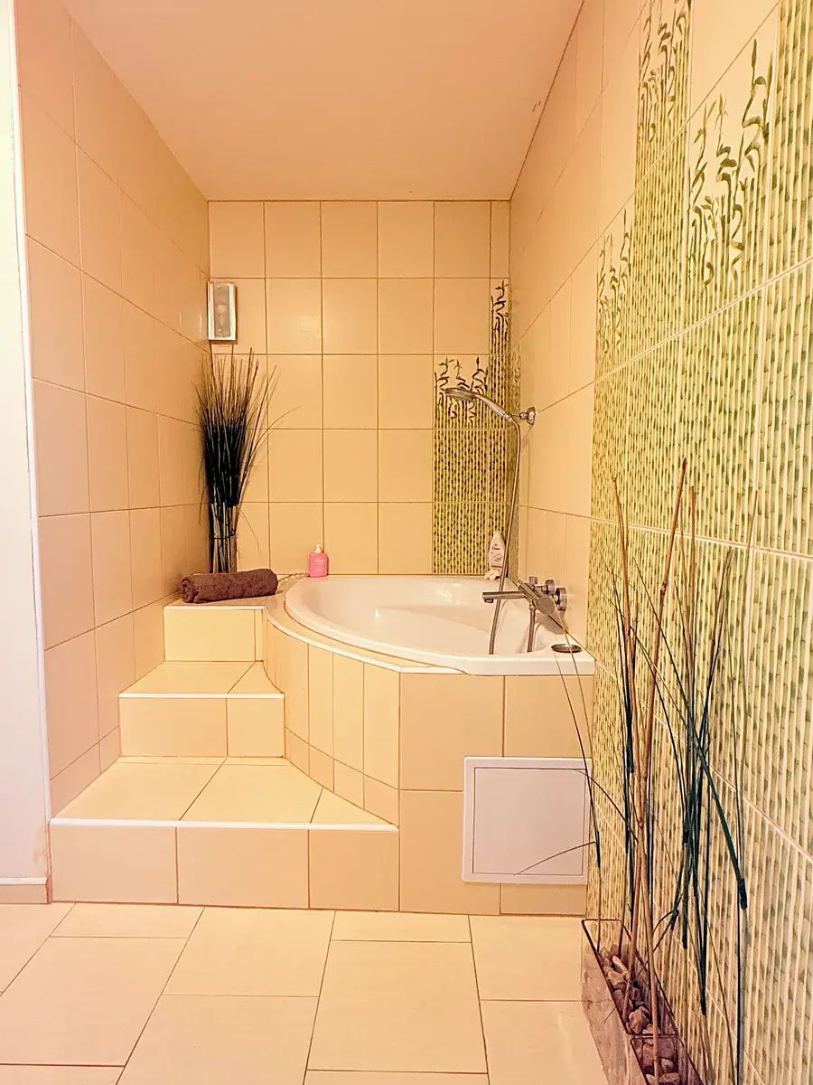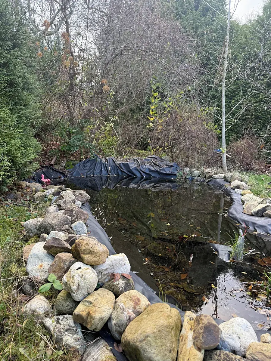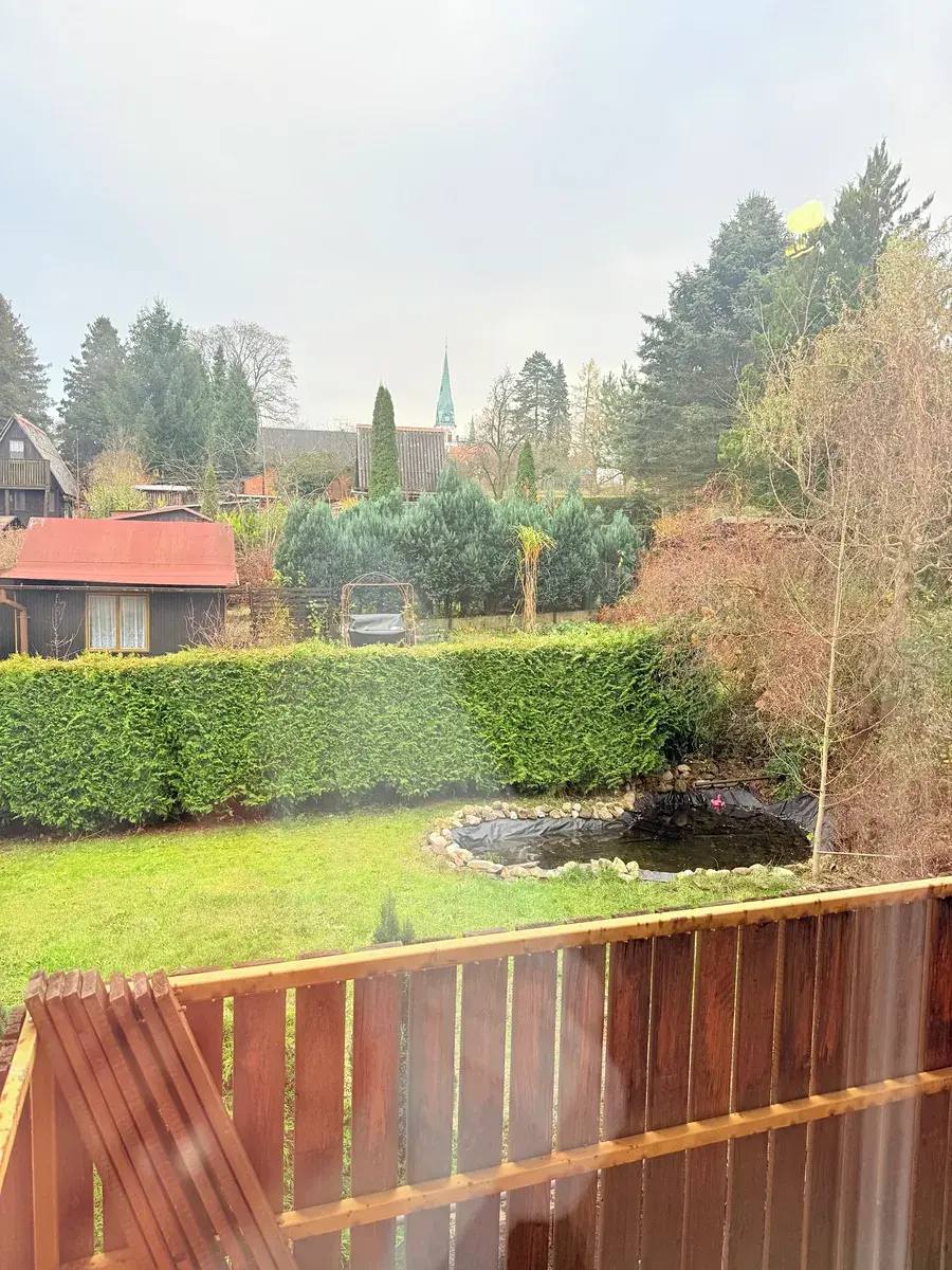 Zahrada poskytuje dostatek soukromí a je zde zahradní jezírko s přírodním zdrojem vody.