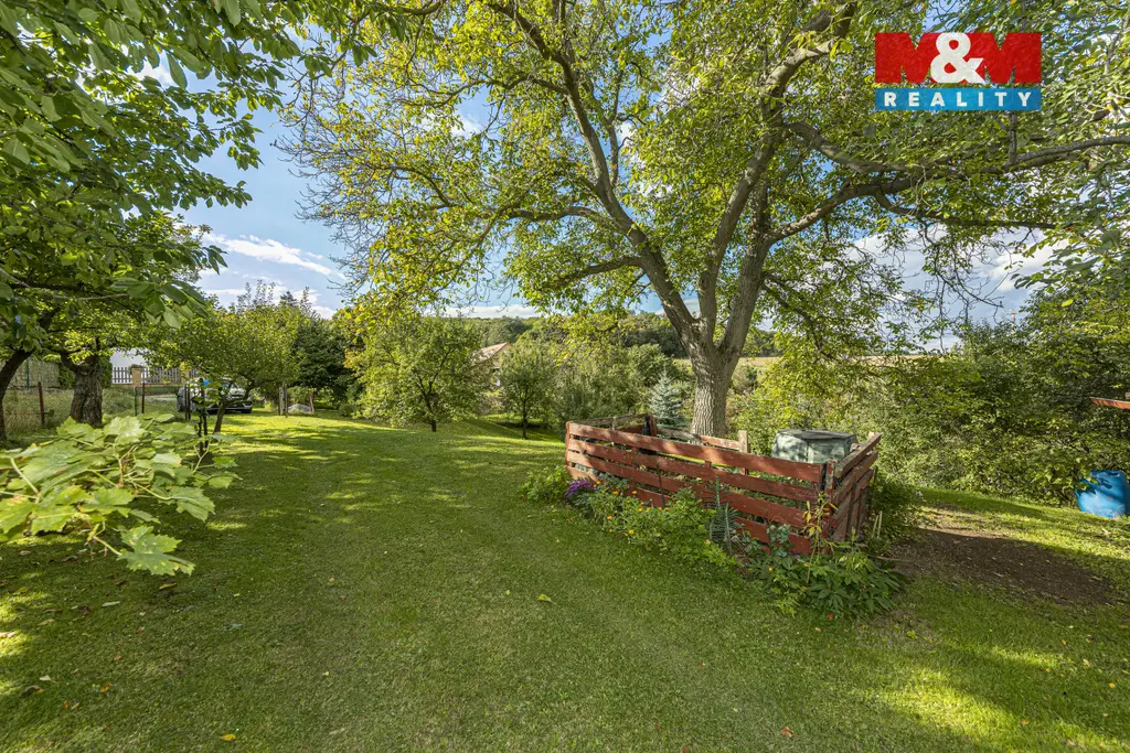 K dispozici je terasa s krásným výhledem na rozsáhlý pozemek o velikosti 1756 m².