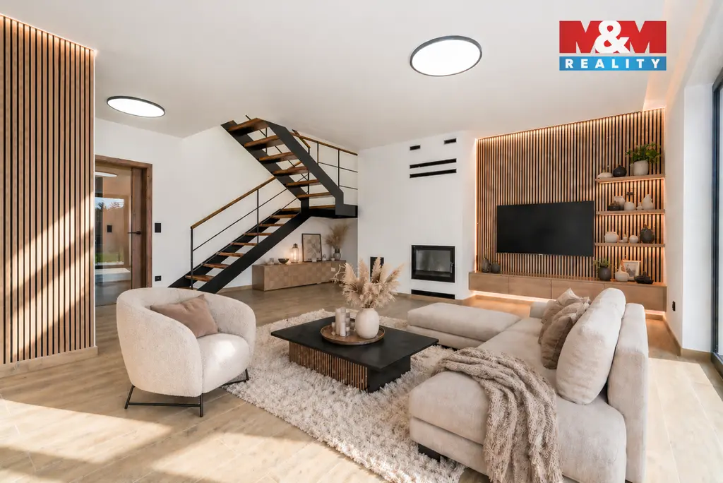 Nabízíme ke koupi novostavbu řadového - rohového domu, o dispozici 4+kk v klidné a vyhledávané lokalitě Beroun–Hostim, která spojuje pohodové bydlení v přírodě s rychlou dostupností do Prahy. Dům o obytné ploše 126 m² disponuje terasou (24 m²), půdou (24 m²), garáží (36 m² se skladem 34 m²) a zahradou o velikosti 686 m². Nemovitost se nachází v malebném prostředí Českého krasu, nedaleko říčky Loděnice, s množstvím turistických tras a výletních míst včetně Karlštejna či Svatého Jana pod Skalou. Do centra Berouna je to pouhých 5 km a do Prahy se dostanete po dálnici D5 za cca 15 minut. Dům je postaven z kvalitních materiálů s důrazem na detail, je energeticky úsporný (třída B) a vytápěn tepelným čerpadlem. Samozřejmostí jsou plast-hliníková okna s trojskly, venkovní žaluzie, moderní koupelny či designové prvky interiéru. Ideální volba pro ty, kteří hledají klid, prostor a kvalitní bydlení v dosahu města. Vhodné i jako investice.Pro více informací nebo domluvení prohlídky volejte makléři.