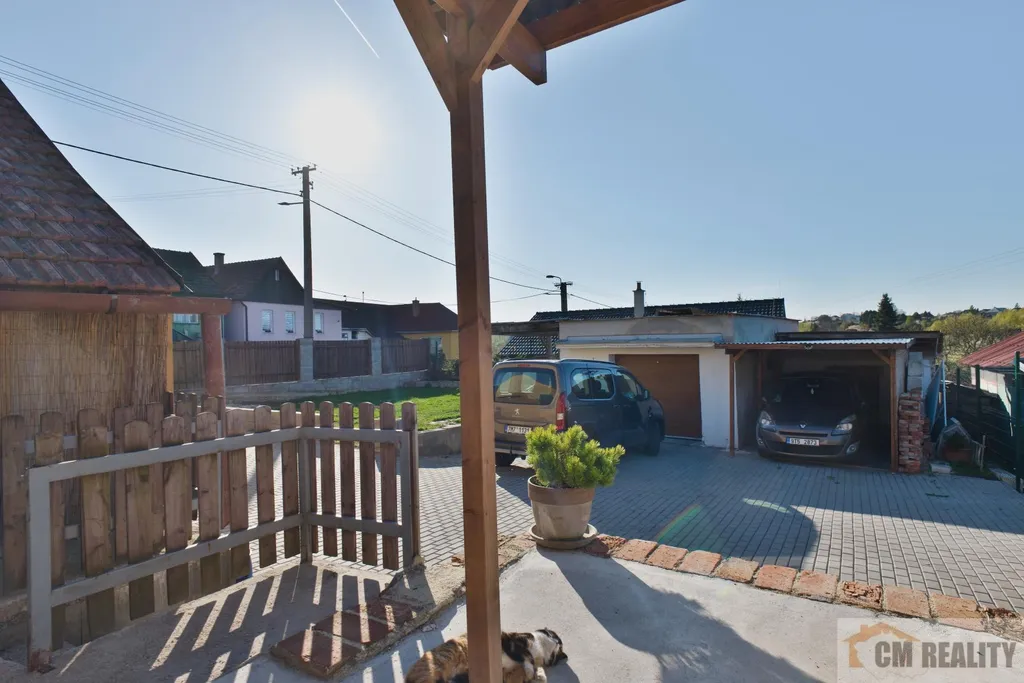 Velkou výhodou domu je parkování přímo na pozemku, zahrada a terasa s pergolou, která nabízí příjemné místo pro odpočinek.