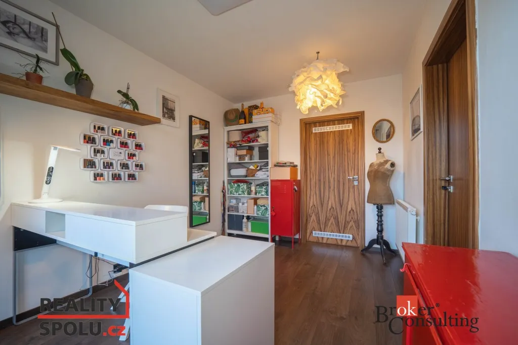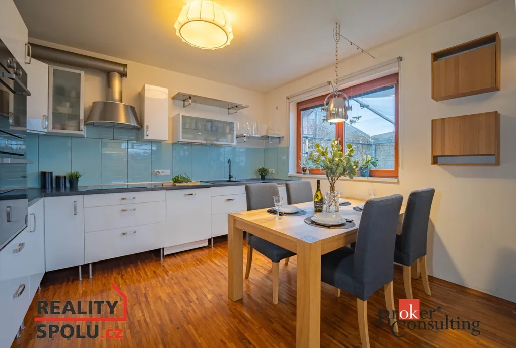 Pokud chcete bydlet v Říčanech! Ve výhradním zastoupení nabízíme k pronájmu nádherný řadový dům, sousedící pouze z jedné strany s dalším domem. Dům je kompletně vybaven k nastěhování 1.5.2026. Nyní řešeno dispozičně jako 4kk, navíc zasklená terasa fungující jako další místnost. K domu náleží garážové stání s přístavkem, nyní jako pracovna. Vchod domu , malá předsíň, poté vstup do haly. Samostatně stojící WC, technická místnost a sklad. Zašupovací dveře oddělují obývací pokoj od haly. Obývací pokoj je spojen s kuchyňským koutem. Dům je prosvětlen, s výhledem do zeleně. Z obývacího pokoje je vstup na terasu a zahradu. Zahrada je velmi citlivě řešená, skýtá obyvatelům domu naprosté soukromí. Po osvětleném schodišti vstupujeme do patra . V patře jsou tři samostatné pokoje, nyní využíváno jako dva dětské a ložnice. Z ložnice je vstup na zastřešenou terasu, která je nyní využívána jako tělocvična či relaxační místnost. V horním patře je velká koupelna s vanou a sprchovým koutem. Dům je na okraji města, skloubí v sobě soukromí a přírodu. Dojezd do centra Prahy cca 20 minut. Veškerá občanská vybavenost na dosah. Včetně soukromé školky, státní školy, školky, Gymnázia. Říčany jsou opakovaně vyhlášeným nejlepším městem pro život! Kauce majiteli jsou 2 měsíční nájmy.Těšíme se na prohlídky.