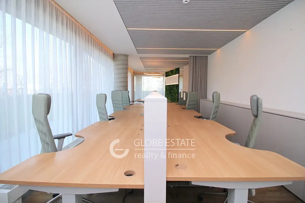 V kancelářích zůstane veškeré movité vybavení, včetně moderní vestavěné kuchyně se spotřebiči, barového stolu a židlí, vestavěných skříní, ergonomických, výškově elektricky nastavitelných stolů a kancelářských židlí, což umožňuje okamžité nastěhování a zahájení provozu bez dalších investic.