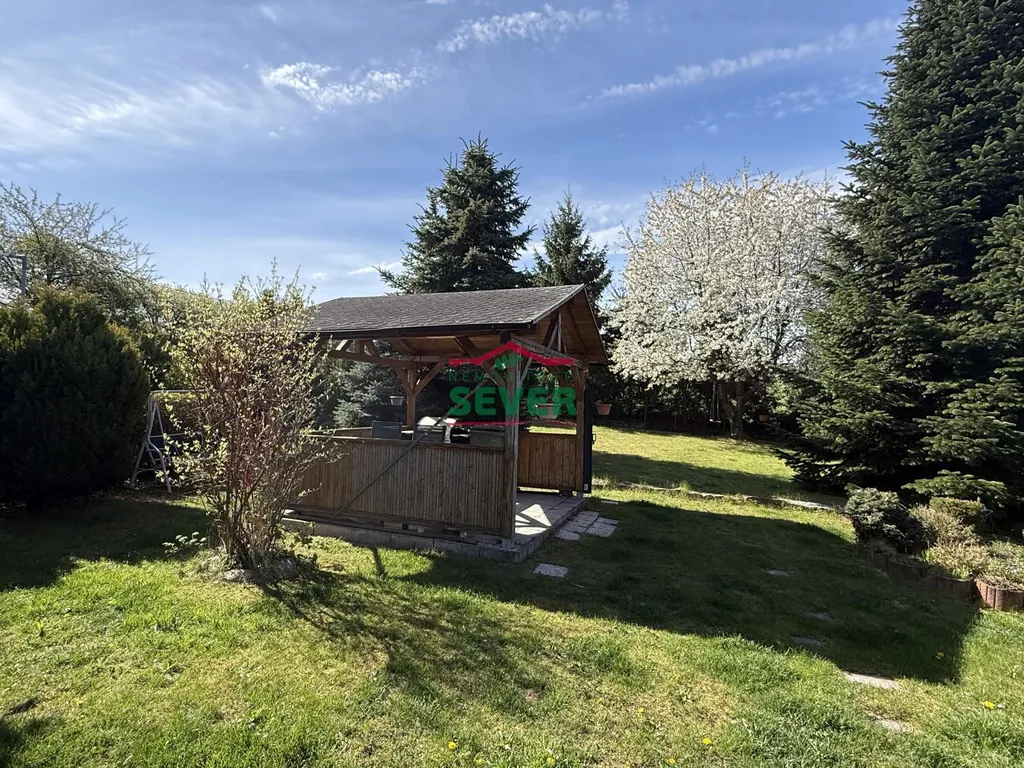 Nemovitosti SEVER vám zprostředkují prodej RD 7+1 v osobním vlastnictví, Třeskonice, Tuchořice, okr. Louny. Patový dům po rekonstrukci stojí na pozemku, o výměře 1340 m2, a je celý oplocený. Součástí kamenného, částečně podsklepeného domu je garáž 31 m2, kůlna, dvě dílny, pergola, skleník, zahrada 910 m2 a zásobník na užitkovou vodu 1000 l. V domě s obytnou plochou 160 m2 je zavedena elektřina 230 a 380 V, pitná voda, vytápění je řešeno elektrickým kotlem rozvedenými radiátory, ohřev vody kombinovaným bojlerem, nebo kotlem na tuhá paliva, WC do jímky. V domě jsou nové rozvody vody v plastu, elektřina v mědi, interiérové dveře, zárubně, plastová okna s dvojskly. Dům je také zateplený, má novou střechu, fasádu, dva komíny s revizí a jeden je vyvložkovaný. V přízemí je vstupní chodba, koupelna, WC, vstup do sklepa, špajz, kuchyně, čtyři místnosti, v patře jsou dvě místnosti, komora a nevyužitý prostor na další místnosti. V kuchyni je linka obložena dlaždičkami, kombinovaný sporák, myčka, lednice a jídelna. Koupelna s WC jsou celé v keramickém obkladu. V koupelně je vana, skříňka s umyvadlem, sprchový kout, přípojka na pračku, nástěnné topení a odvětrávací okno. Zůstávají velké skříně. Na udržované zahradě je prostor na relax a odpočinek, hotová podezdívka na bazén, rostou zde plodící jabloně, třešeň, hruška, ořech a rybíz. Dům se nachází 20 km od Loun a 11 km od Žatce. V případě zájmu zajistíme optimální financování našimi poradci.