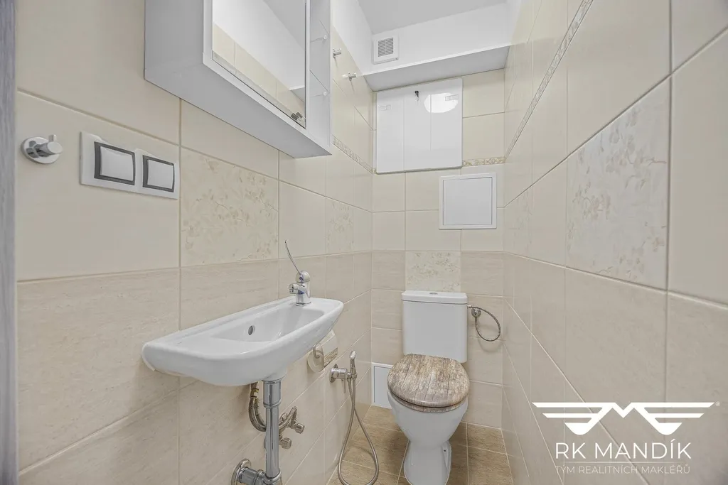 Dále se v bytě nacházejí dva samostatné a vnitřně odhlučněné pokoje o výměře 12,21 m² a 13,86 m² orientované na sever, koupelna (2,93 m²) s vanou, koupelnovou zrcadlovou skříňkou a nadstandardní sprchou a topným žebříčkem, samostatné WC (1,27 m²) s umyvadlem a bidetní sprškou a prostorná chodba s bezpečnostními dveřmi a vestavěnou skříní s praktickým úložným prostorem.