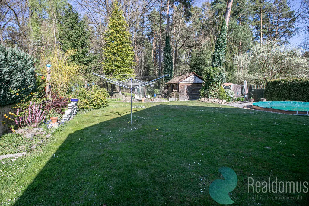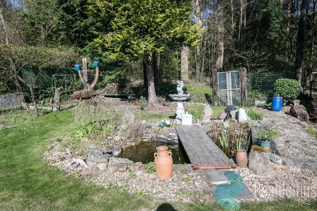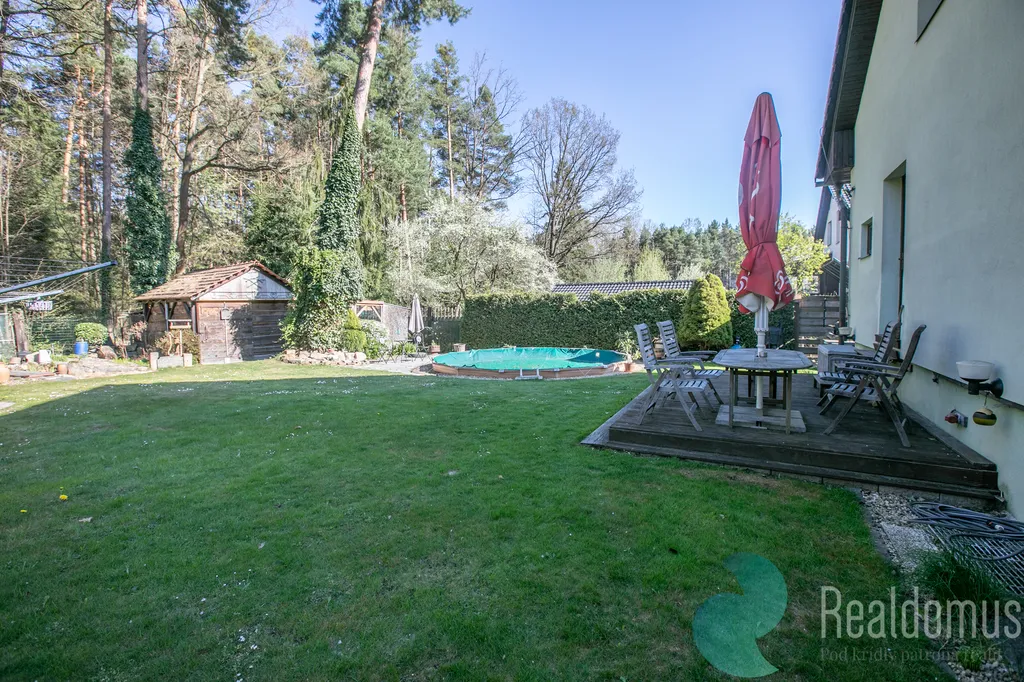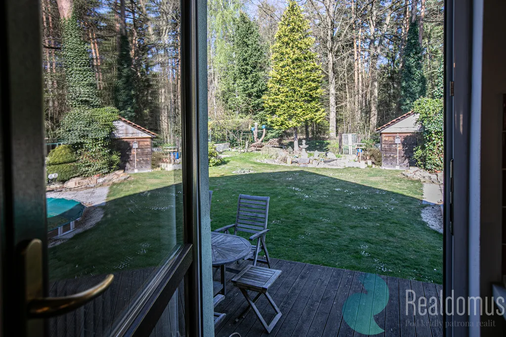 Nabízí maximální soukromí, terasu pro posezení, částečně zapuštěný kruhový bazén i zahradní domek. A to nejlepší? Ze zahrady můžete projít rovnou do lesa. Výhled na Těšínskou kapličku s pramenem dodává místu jedinečnou atmosféru.