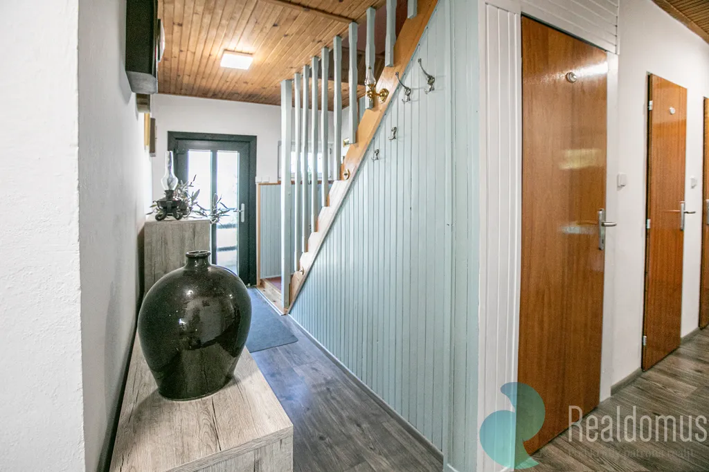 Otevřený obývací prostor s barovým pultem a vstupem na lodžii nabízí ideální místo pro rodinná setkání i posezení s přáteli. Druhá velká místnost s výhledem na zahradu a les poskytuje klid pro práci i odpočinek. Samozřejmostí je koupelna s vanou a WC.