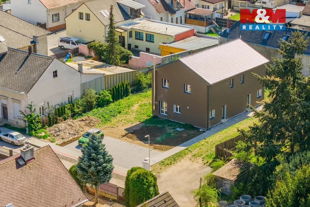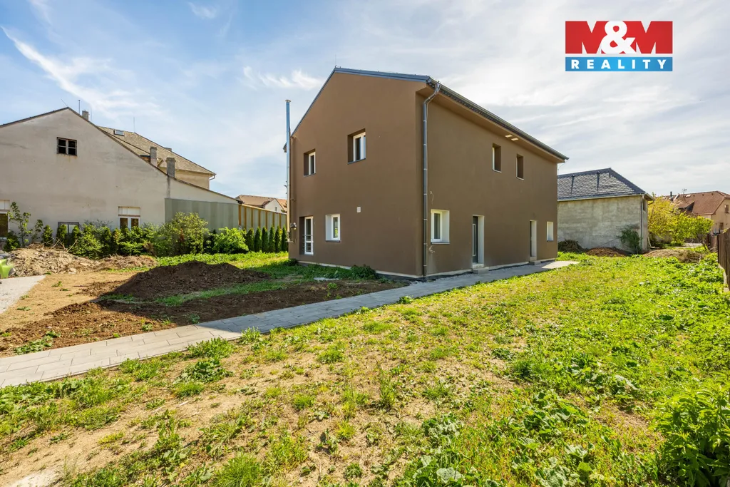 Dům o dispozici 4+kk a podlahové ploše 97 m² nabízí promyšlené uspořádání pro pohodlný rodinný život. Dominantou přízemí je světlý obývací prostor s kuchyňským koutem a přímým vstupem na terasu a zahradu o velikosti necelých 300 m². Nechybí koupelna se sprchovým koutem, technická místnost ani praktická vstupní hala.