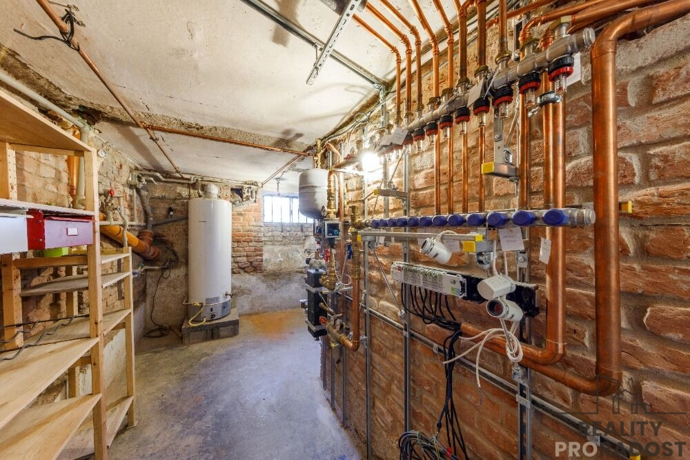 Nabízíme Vám výhradně prodej prvorepublikové vily s prosluněnou zahradou v Prostějově na ulici Česká. Užitná plocha domu činí 224 m2. Pozemek má výměru 460 m2 , z toho 212 m2 je zastavěná plocha a nádvoří a 248 m2 zahrada. Prostorná třípatrová vila se nachází v atraktivní vyhledávané lokalitě u parku Kolářovy sady. Vila byla postavena vyhledávanou stavební firmou pana Nedělníka v roce 1926. Veškeré původní prvky zůstaly zachovány, např. krásná kachlová kamna, zábradlí, dlažby. Ve vile jsou 2 byty (2 x 82 m2) s plnohodnotným vstupem na půdu, kde lze vybudovat 3. byt nebo kanceláře. Ve vile proběhla instalace sofistikovaného otopného systému s vytápěním jednotlivých místností zcela oddělenými okruhy. To umožnilo instalaci německého systému Rademacher Smart Home, kdy lze ovládat např. pomocí hlasu nebo aplikace vytápění jednotlivých místností. Tento systém je napojen současně i na vnější žaluzie, které jsou naistalovány v prvním patře a na systém zabezpečení, který je elektricky rovněž nachystán. Příprava na venkovní žaluzie je dále na celém prostoru schodiště. Otopný systém je provedený výhradně měděnými trubkami, kotel je značkový vyšší kategorie vč. nové komínové vložky. Radiátory jsou nové, litinové s nožkami a speciální úpravou retro. Celá instalace topení je chloubou celé nemovitosti. Celkový ráz celé stavby přitom nebyl vůbec narušen. Elektrická soustava je nová, v přízemí je však pouze provedena příprava. Zásuvky a vypínače z porcelánu z řady ABB Decento. Veškeré rozvody vody jsou z roku 2013 v provedení plast. To se týká i veškerých odpadů. Rovněž přívod vody na zahradu je v plastu a z roku 2013. Parketové podlahy jsou v domě vesměs zrenovované, v prvním patře byly přebroušeny a namořeny na bílou barvu. V prvním patře jsou namořeny přírodní směsí olejů a vosků v barvě dřeva, nemovitost zde nebyla intenzivně obývána, takže přebroušení nebylo nutné. Sklep je suchý a pěkný a opět retro s krásnými cihlovými stěnami a novou elektrikou. Okna jsou původní, modřínová a stále ve velmi dobrém stavu. Na některých místech postačuje drobná renovace, měnit by je byla velká škoda, ráz stavby by byla zbytečně a nenávratně narušen. Vytápění v přízemí je plynovými přímotopy, radiátory retro v ceně 50 tisíc pro toto přízemí (4 ks) jsou k dispozici. Na celé zahradě je kvalitní černozem. Dům je napojený na veškeré IS - vodovod, elektřinu, plyn a městskou kanalizaci. Dům se nachází v klidné ulici v lokalitě s kompletní občanskou vybaveností v docházkové vzdálenosti. Doporučuji vám vřele prohlídku a možnost výhodnějšího hypotečního financování koupě prostřednictvím profesionálního finančního partnera. Průkaz energetické náročnosti není k dispozici, uvádíme třídu G. Další informace u makléře zakázky.