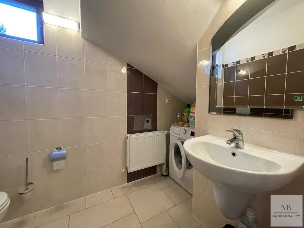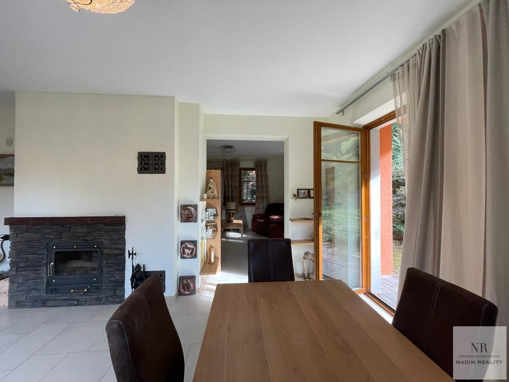 Dům je disponován na dvě patra, v podkoví mansarda.V přízemí domu je prostorný obývací pokoj, velká kuchyně s vestavěnými spotřebiči, jídelna s krbem, vstupní hala a koupelna se sprchovým koutem s WC. Ve druhém patře jsou 3 pokoje, balkón a koupelna se sprchovým koutem. V přízemí je podlahové topení.
