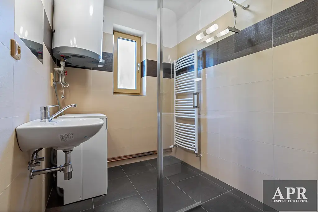 Technické zázemí: Centrální vytápění zajišťuje efektivní správu energií pro celý objekt. Garáž přímo v domě a možnost parkování na vlastním pozemku jsou v lázeňské zóně zásadní konkurenční výhodou.