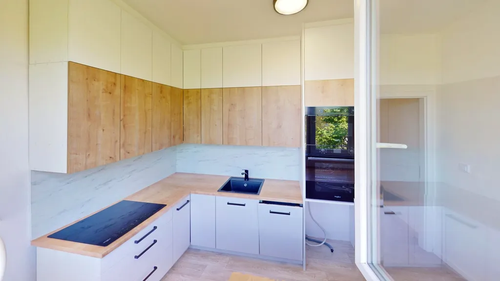 • Rekonstrukce bytu byla jádro, částečně elektřina, omítky, koupelna, toaleta, kuchyně s kuchyňskou linkou na míru od stolaře