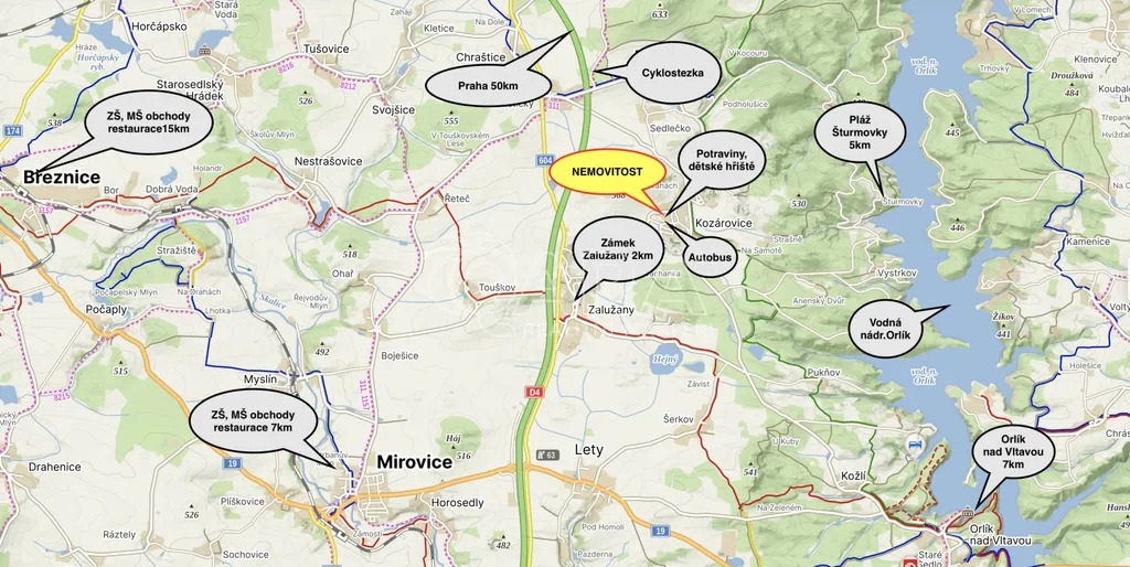 - Mirovice vzdálené cca 8 km