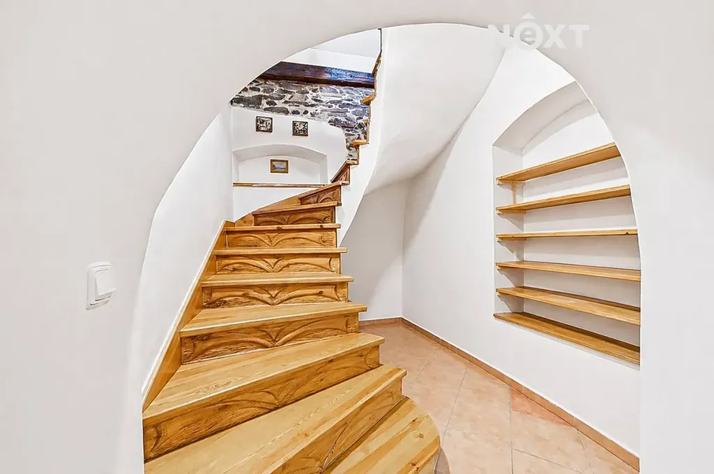 přízemí – velký obývací pokoj propojený s kuchyní, jeden samostatný pokoj, technická místnost/kotelna a mini sklep