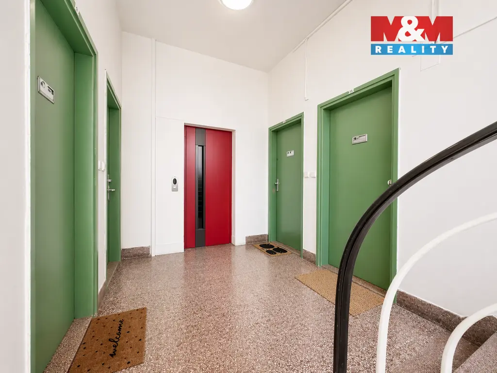 Byt je umístěn ve 3. patře cihlového domu. Na každém patře se nacházejí pouze čtyři bytové jednotky, což zajišťuje dostatek soukromí a klidné bydlení.