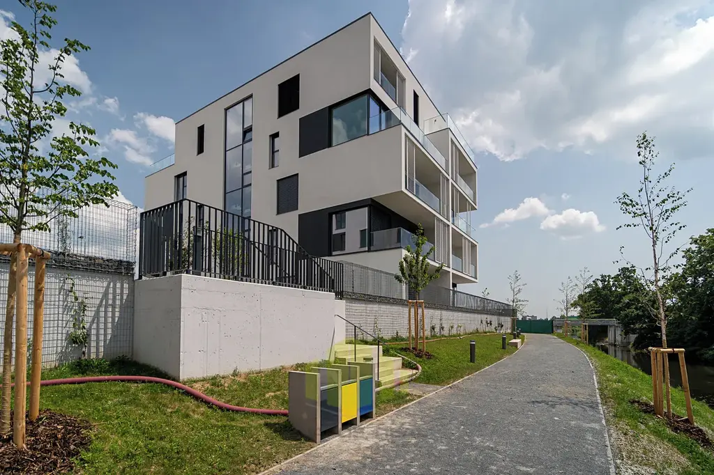 A jaké moderní technologie na Vás čekají? V prvé řadě je to úsporné stropní chlazení REHAU, rekuperace vzduchu a teplovodní podlahové topení v kombinaci s geotermálními vrty s tepelnými čerpadly, díky čemuž je bydlení nejen opravdu nízkonákladové a komfortní po celý rok, ale také antialergenní! Dále stojí za zmínku hliníková okna s trojskly, třívrstvé dřevěné podlahy, sádrové omítky, příprava na jacuzzi na terase, značková sanita, ale také i například kočárkárna/kolárna a místnost pro mytí kol a pejsků v přízemí! Velkým benefitem jsou již zmíněné dvě koupelny, jedna společná a druhá privátní manželská! Samozřejmostí je bezbariérový přístup do domu, vysokorychlostní stabilní internet optickým kabelem a moderní výtah.