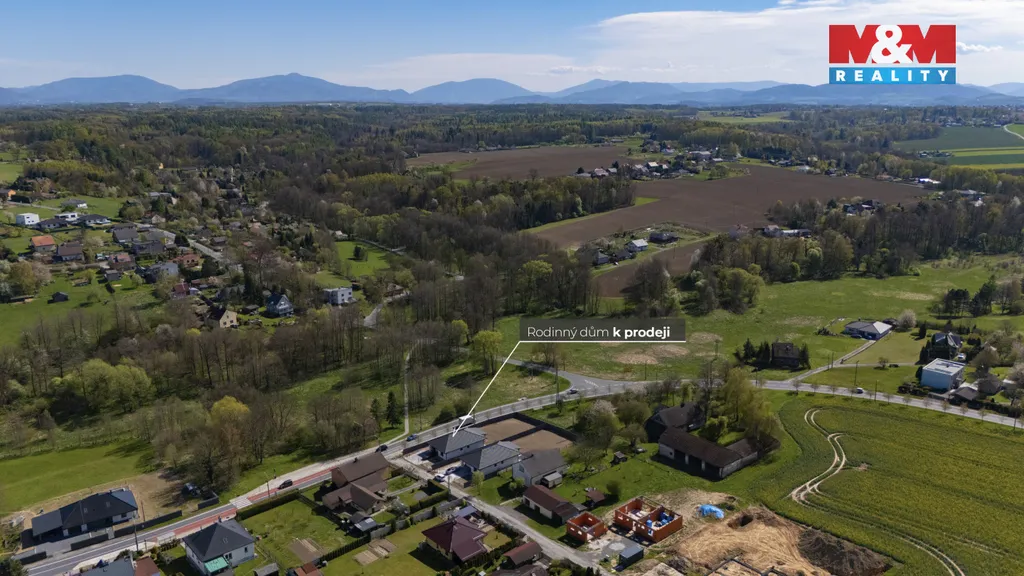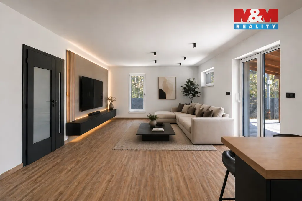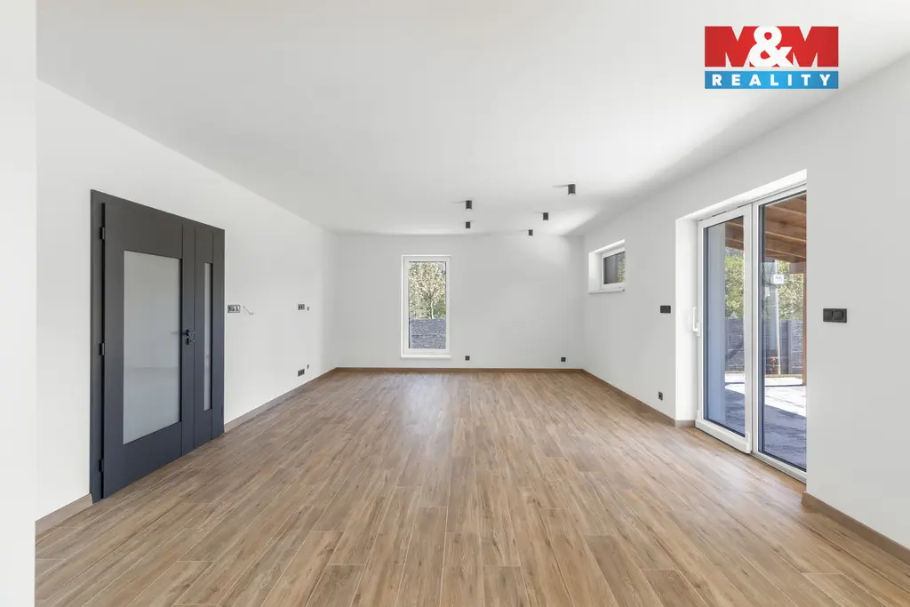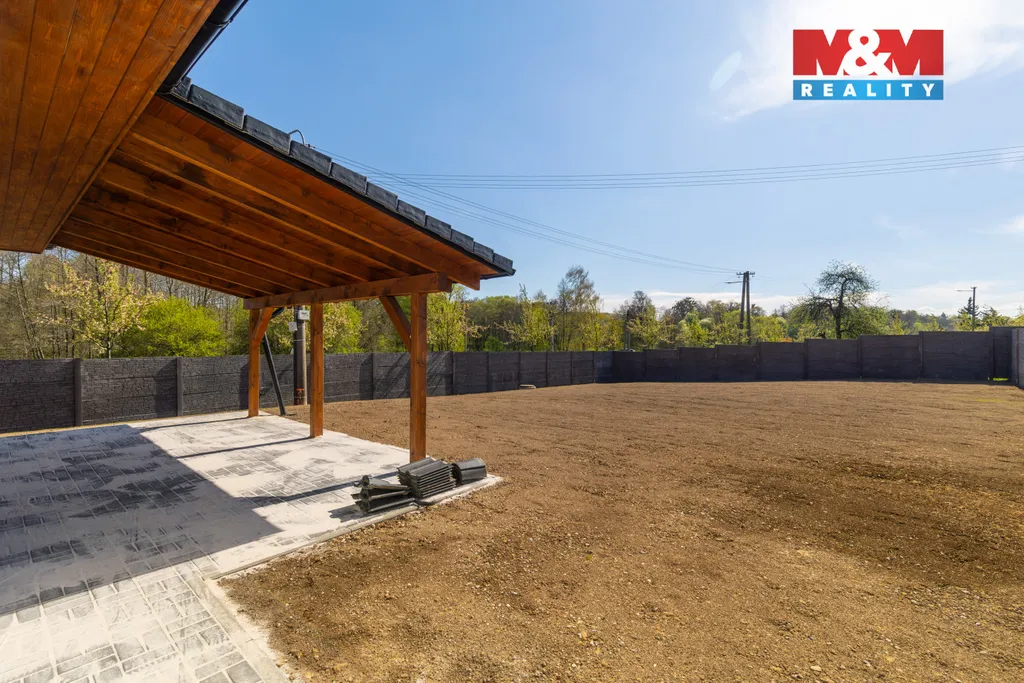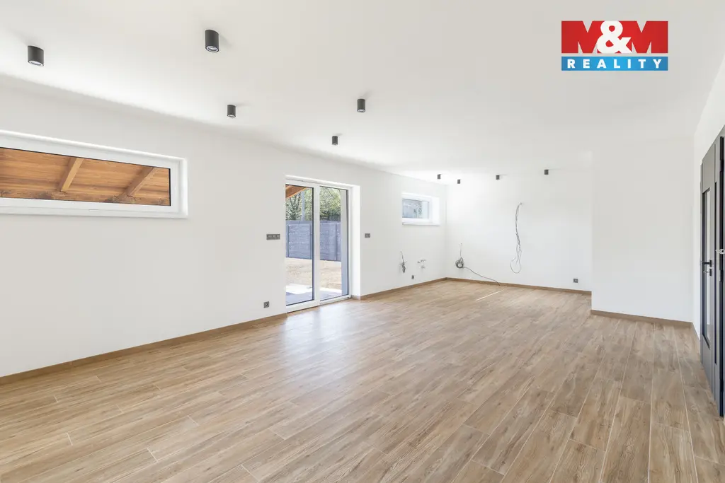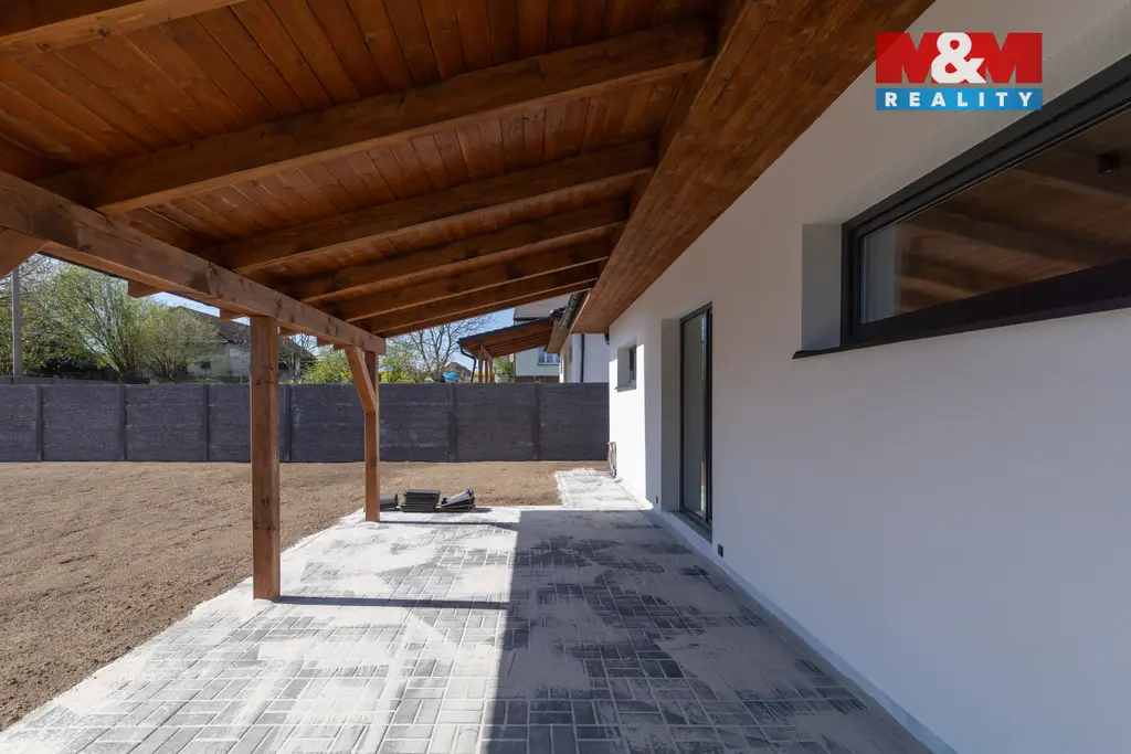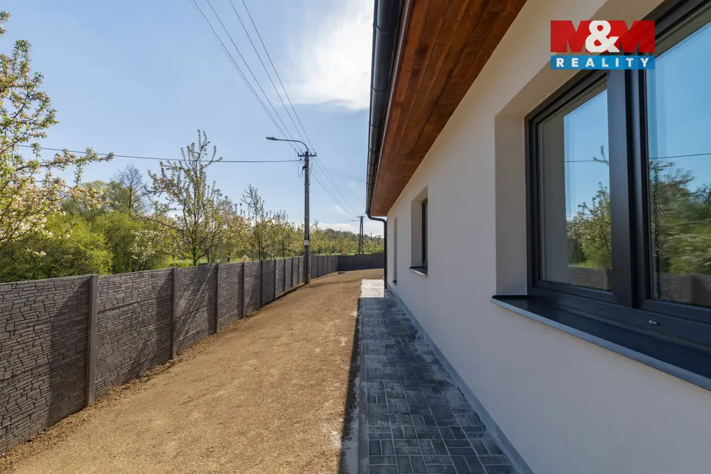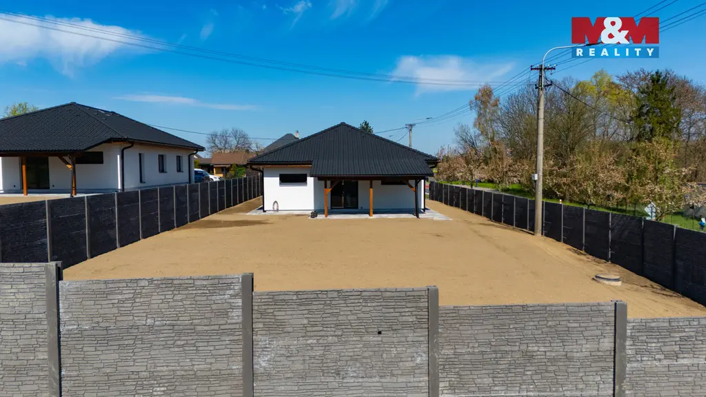Novostavba rodinného domu typu bungalov s praktickou dispozicí 4+kk v příjemné části obce Horní Datyně. Dům je dokončen a připraven k okamžitému nastěhování – chybí pouze instalace kuchyňské linky, která není zahrnuta v kupní ceně. Součástí nemovitosti je kompletní oplocení včetně elektrické vjezdové brány a branky. Vytápění a ohřev vody zajišťuje úsporné tepelné čerpadlo (systém vzduch/voda) pro nízké provozní náklady a dům je napojen na obecní kanalizaci.