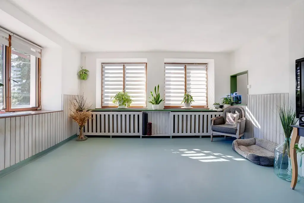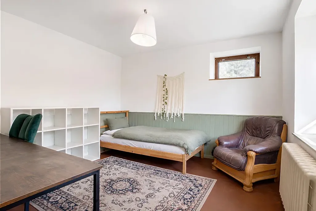 V suterénu (98 m2) se nachází garáž, dílna/výrobna, kotelna s technickým zázemím pro TČ a FVE a čtyři sklepní prostory.