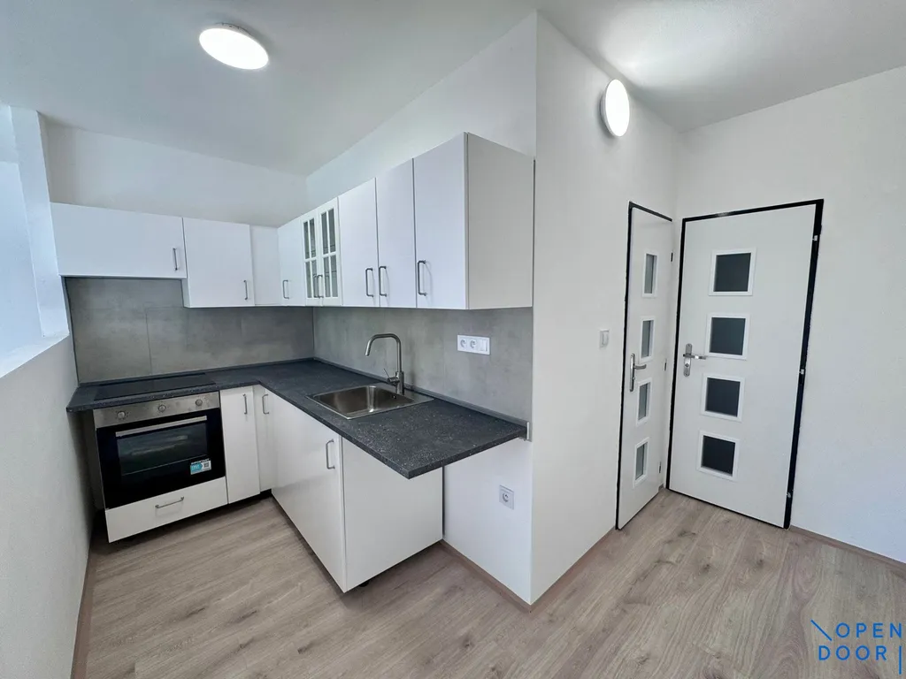 V rámci rekonstrukce byla provedena nová elektroinstalace včetně revize, stejně tak nové rozvody vody a odpadů. Dominantou obytného prostoru je moderní kuchyňská linka do tvaru L od značky IKEA, která je vybavena vestavnými spotřebiči, konkrétně horkovzdušnou troubou a sklokeramickou varnou deskou značky Candy.