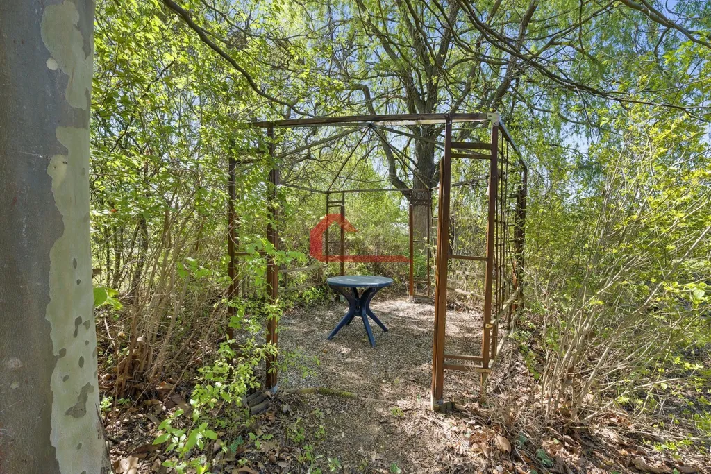 Zahrada nabízí skleník, altán, ohniště, solární sprchu, dva přístřešky na dřevo a dostatek úložného prostoru. Dále je zde nízká dřevěná bouda na techniku - Darling a bojler. Součástí prodeje je také traktor na sekání trávy, viz. foto..