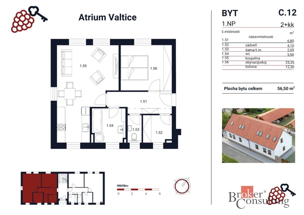 V projektu Atrium Valtice nabízím byt C12 2+kk, který spojuje praktickou dispozici, klidné zázemí a výbornou lokalitu v centru města.