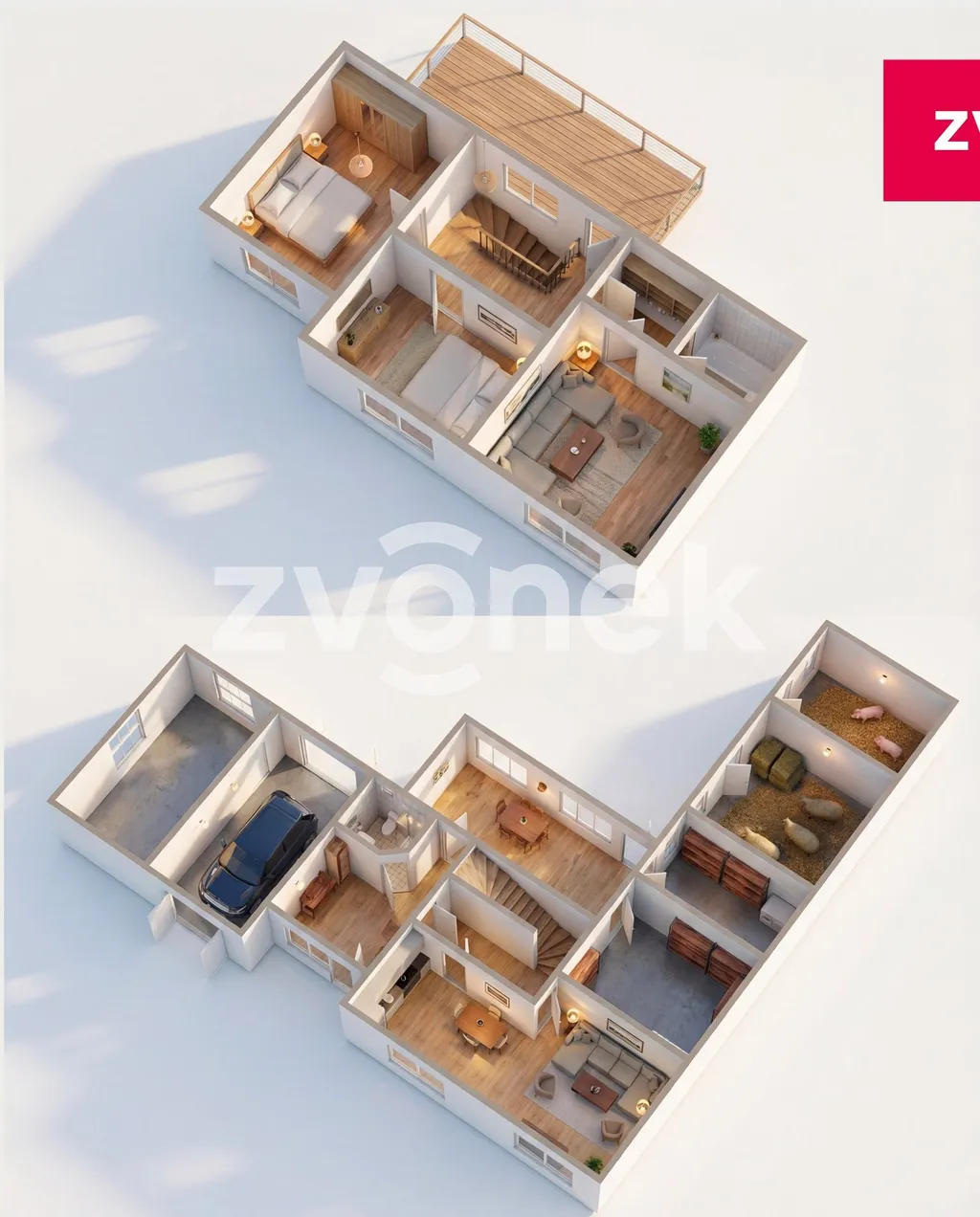 • dvě samostatné ložnice