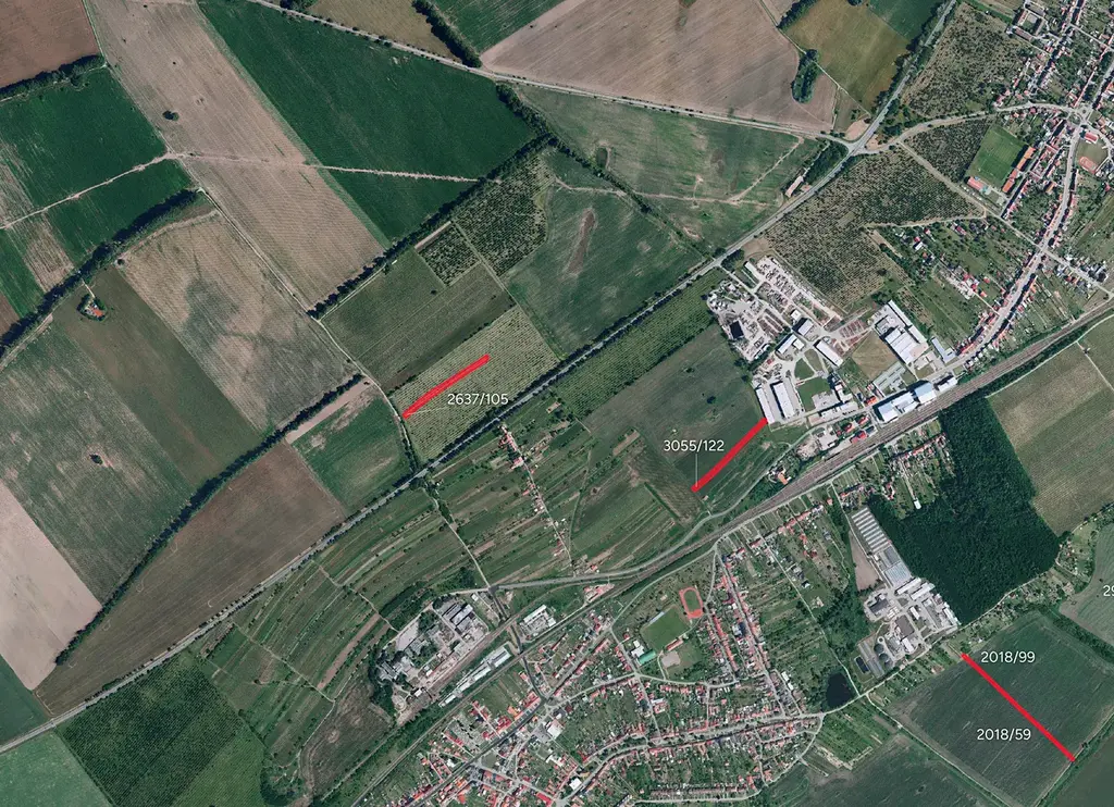 -> parc. č. 431/44, 435/22, 439/21, 2018/59, 2018/99, 2031/47, 2047/119, 2051/426, 2051/427, 2055/43, 2055/44, 2061/6, 2061/7, 2062/48, 2062/49, 2080/18, 2080/19, 2152/18, 2153/50, 2637/105, 3055/122 (LV 364)