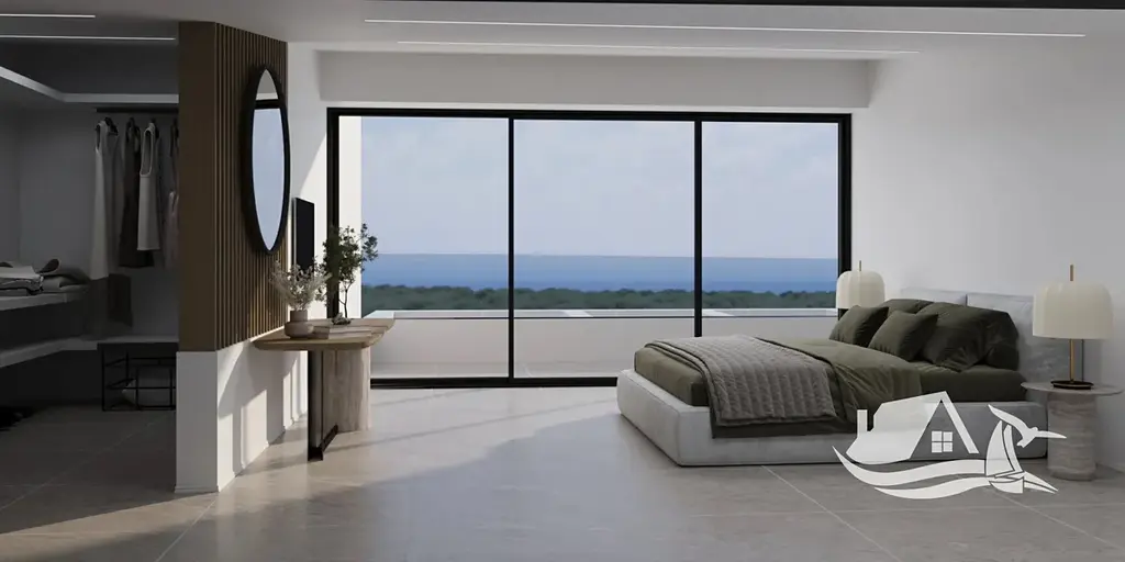 Každá vila disponuje 4 ložnicemi s vlastní koupelnou (en-suite), což poskytuje vysoký komfort a soukromí pro rodinu i hosty. V přízemí se nachází prostorný obývací prostor s designovou kuchyní, jedna ložnice s koupelnou a samostatné WC. V patře jsou umístěny další tři en-suite ložnice, orientované tak, aby nabízely maximum světla a výhledů.